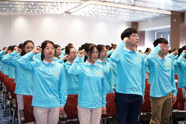 随后,全体青年志愿者集体宣誓,承诺将以最温暖的态度,最美丽的微笑,为参会的国内外嘉宾提供最优质的志愿服务,为厦门举办一届成功、精彩、难忘的电影盛会贡献智慧力量。