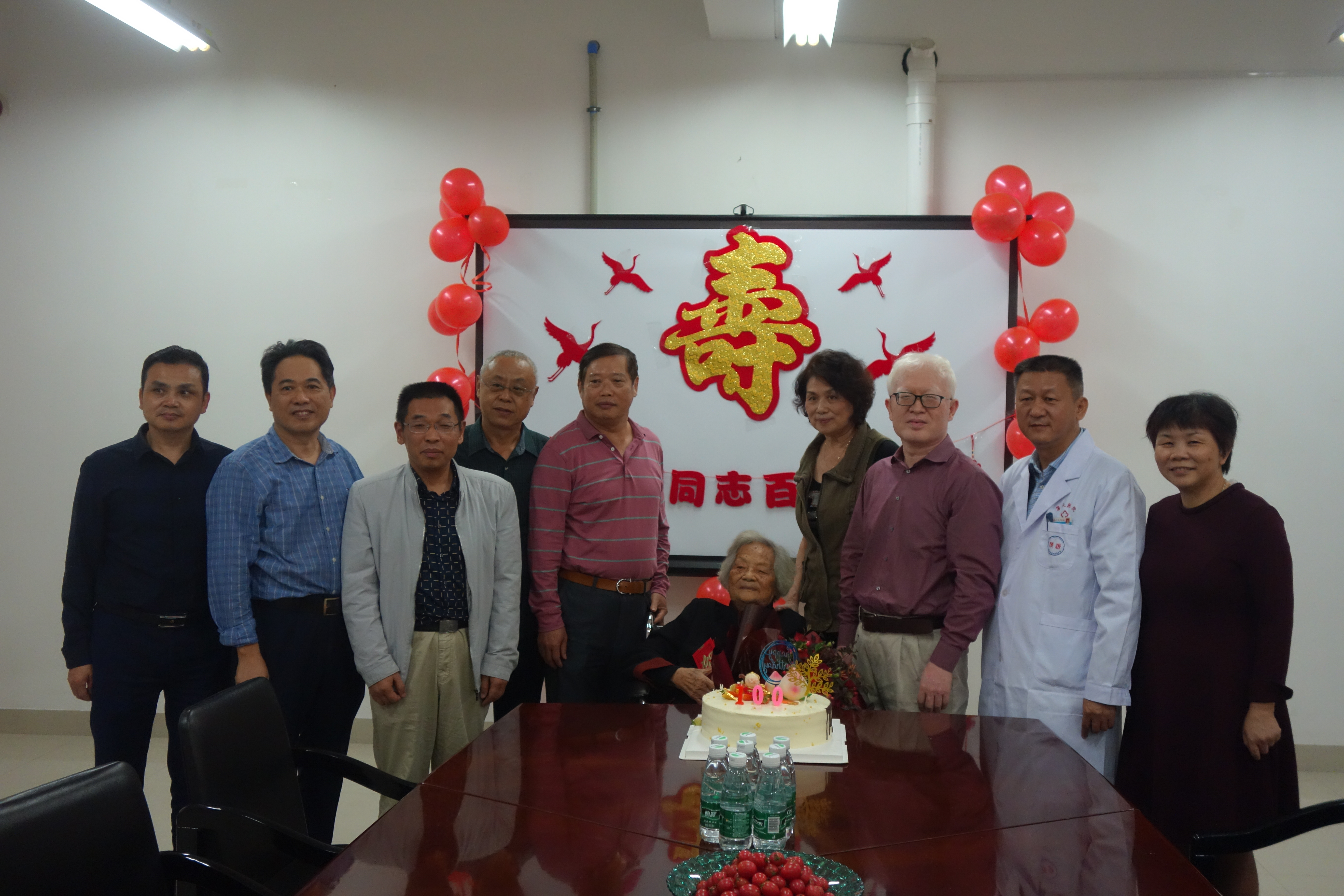 11月15日下午,学校在校医院会议室举行简朴而隆重的祝寿会,为我校离休干部谢植桂庆祝百岁生日。