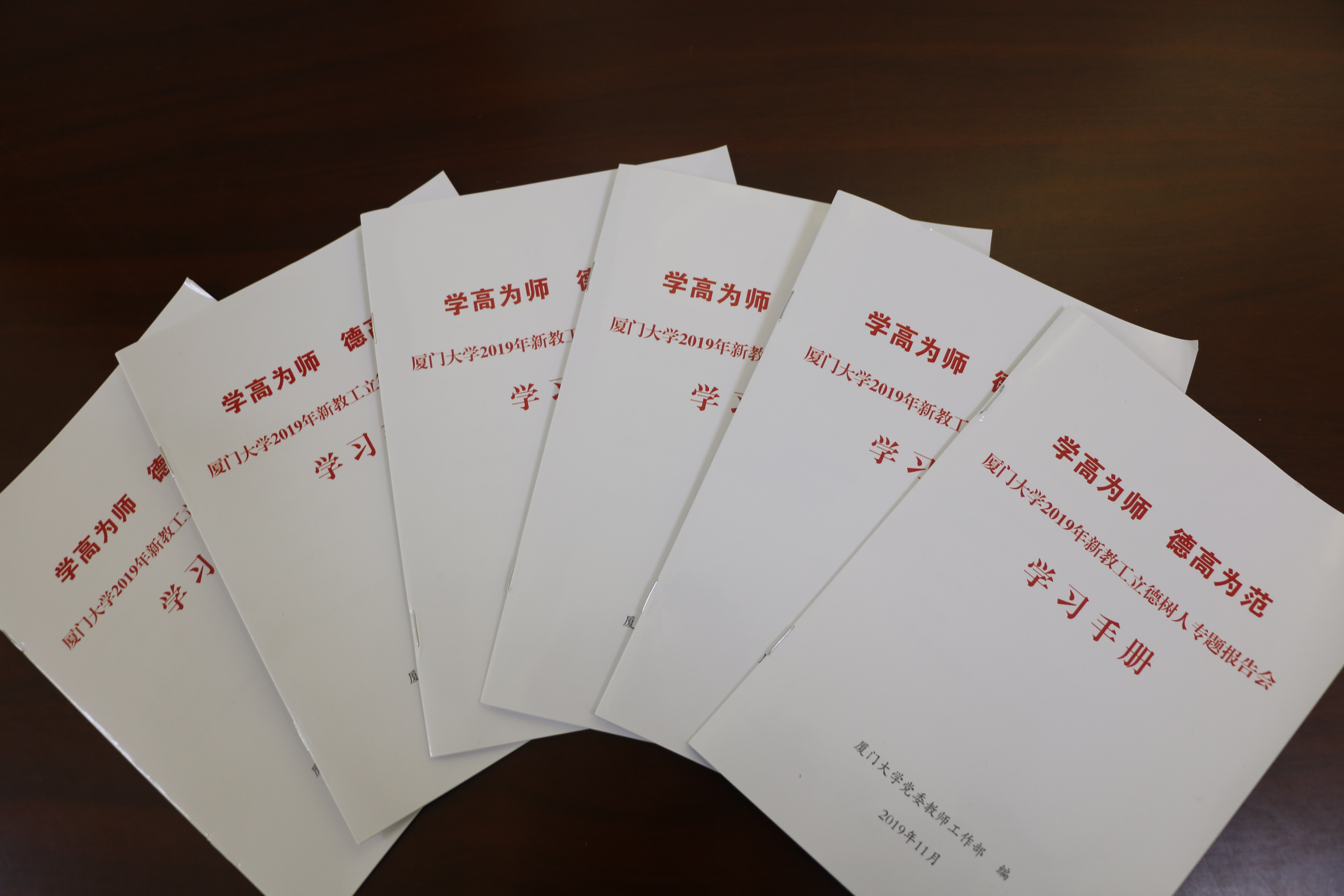 会上还开展了2019年厦门大学教师思想动态调研、为新教工分发《学高为师 德高为范》学习手册。手册内容涵盖 “四有好老师”“四个引路人”“四个相统一”“十大”育人体系等,进一步宣传贯彻新时代高校教师职业行为十项准则,加强新教工思想政治教育,落实师德师风建设长效机制。