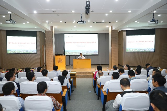 欢迎仪式后,张彦作题为《坚守育人初心 践行教育使命 建设一流大学》的专题报告。他表示,人才队伍建设是学校“双一流”建设的“助推器”和“动力源”。他说,从荣休的老教师们身上,我们看到了厦门大学精神的传承,从新入职教职工身上看到了奋进的力量。