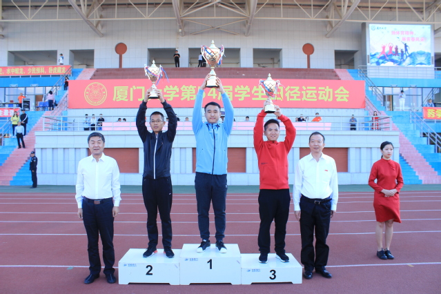 经过两天的激烈角逐,医学院以5529分的总成绩摘得翔安校区学生团体总冠军,生命科学学院和海洋与地球学院分别以总成绩5473分和5033.5分名列亚军和季军。少数民族预科班、生命科学学院、公共卫生学院、医学院获得道德风尚奖。校党委副书记赖虹凯出席闭幕式并为获奖学院颁奖。至此,我校第54届学生田径运动会圆满落下帷幕。