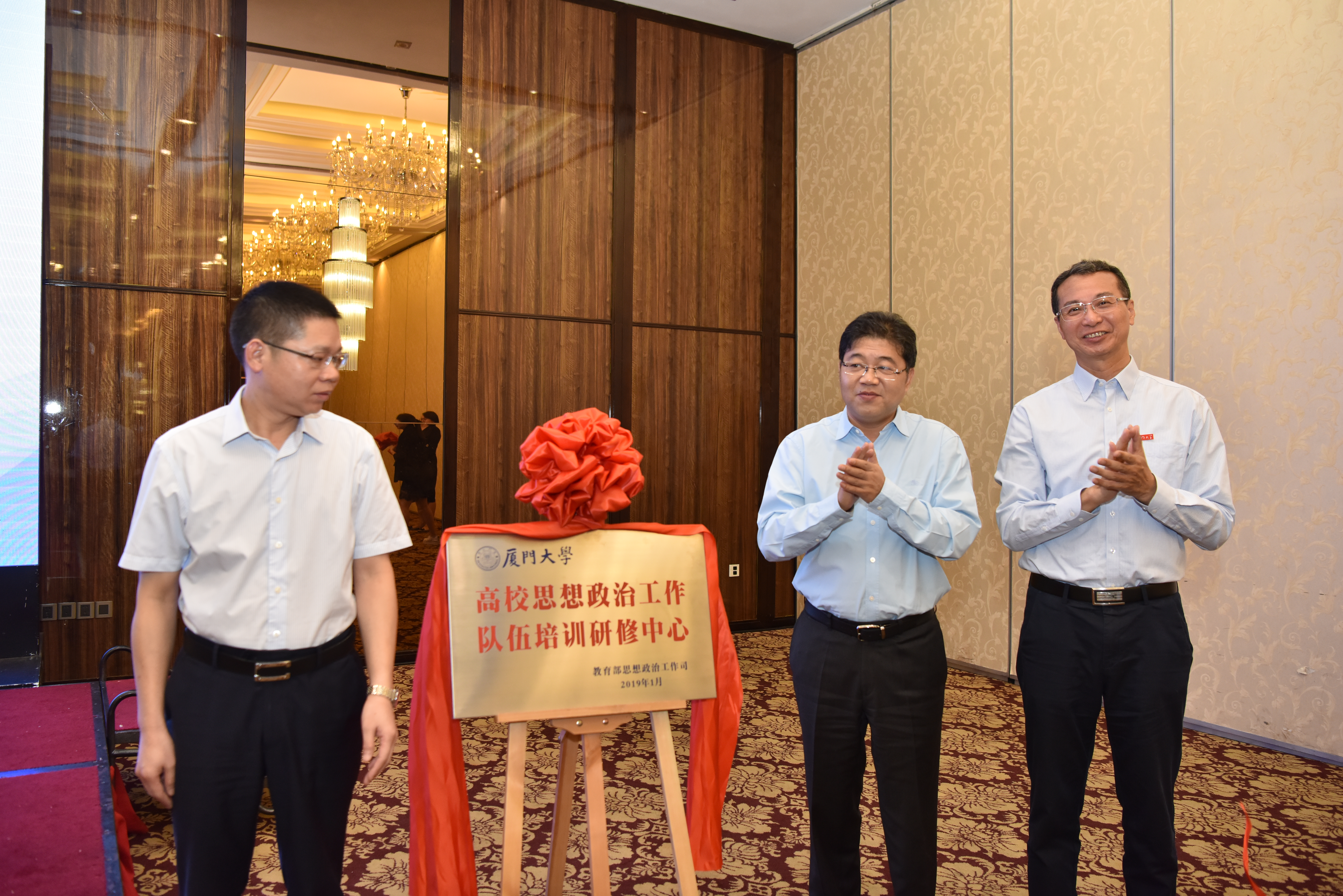 开班仪式上,张文斌、王飏、赖虹凯为高校思想政治工作队伍培训研修中心(厦门大学)揭牌。