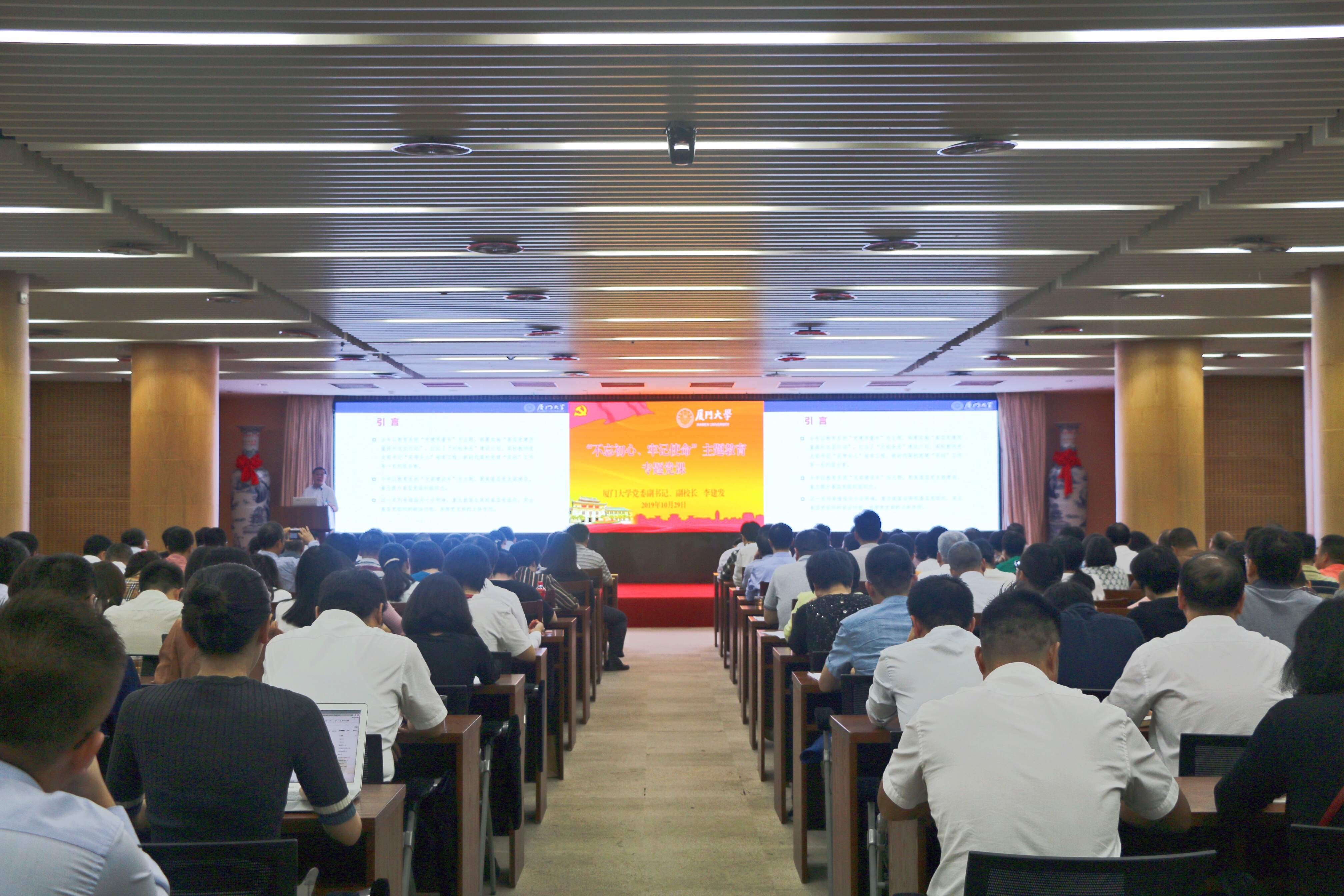 根据学校“不忘初心、牢记使命”主题教育实施方案安排,10月29日上午,校党委副书记、副校长李建发在科艺中心一楼多功能厅作《重视基层 质量建党——坚决打赢学校基层党建质量提升攻坚战》专题党课。