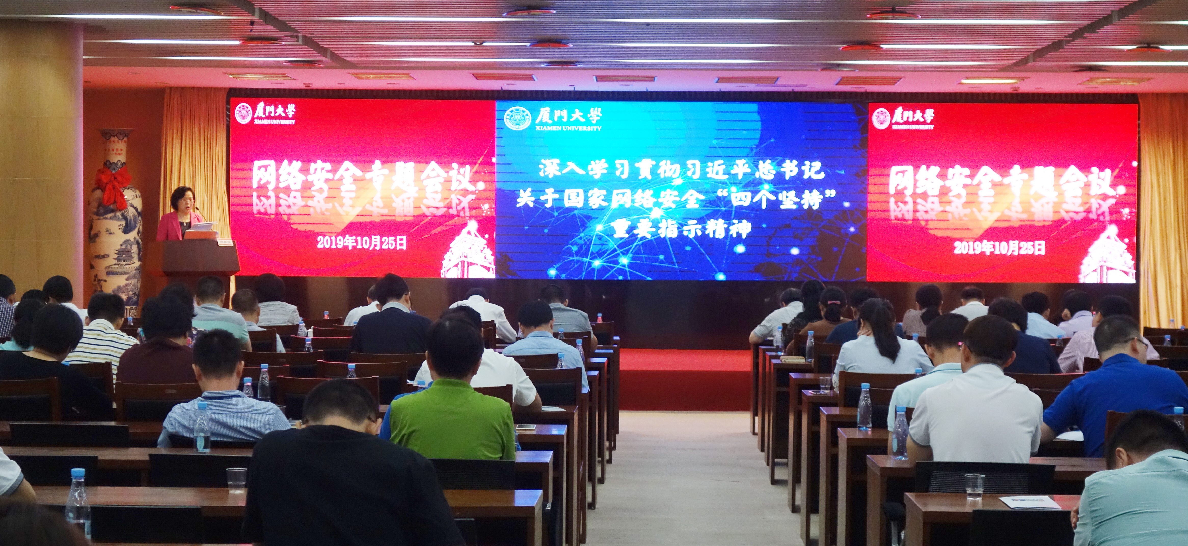 10月25日上午,学校召开学校网络安全专题会议,深入学习习近平总书记关于网络安全的重要论述精神,重点学习习近平总书记9月16日关于国家网络安全“四个坚持”重要指示精神,深入分析学校网络安全面临的新形势新要求,部署下一阶段工作任务。副校长邓朝晖讲话。