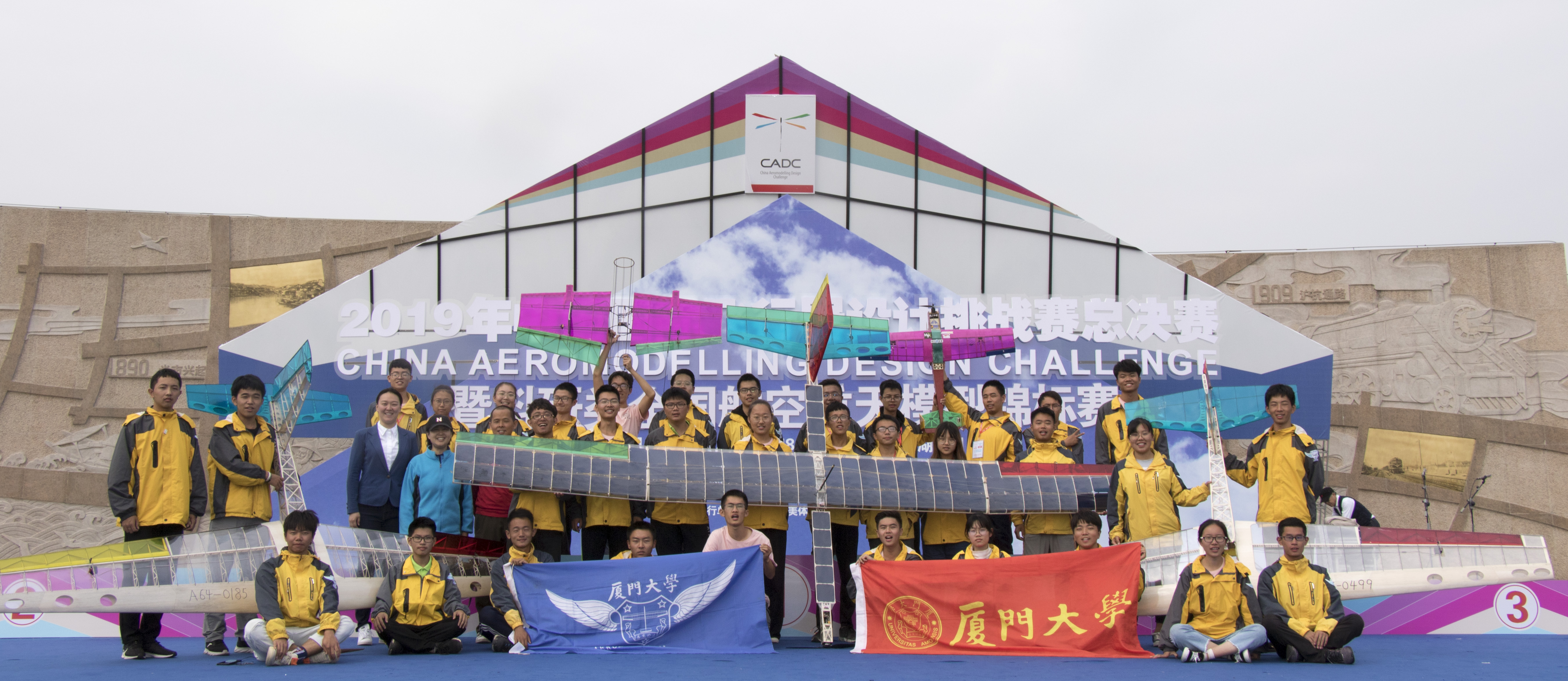 10月17日,历时7天的2019“中国国际飞行器设计挑战赛”(以下简称CADC)总决赛在浙江海宁落幕,厦门大学航模队34名队员与来自北京航空航天大学、南京航空航天大学、西北工业大学、清华大学、国防科技大学、西安交通大学和北京理工大学等103所高校的1817名队员同台竞技,共荣获一等奖两项(一项个人季军),二等奖四项,三等奖三项以及团体季军一项的优异成绩,且在垂直起降载运和对地侦察与打击项目中刷新学校参赛以来的最好记录,首次参赛太阳能飞机项目荣获三等奖。