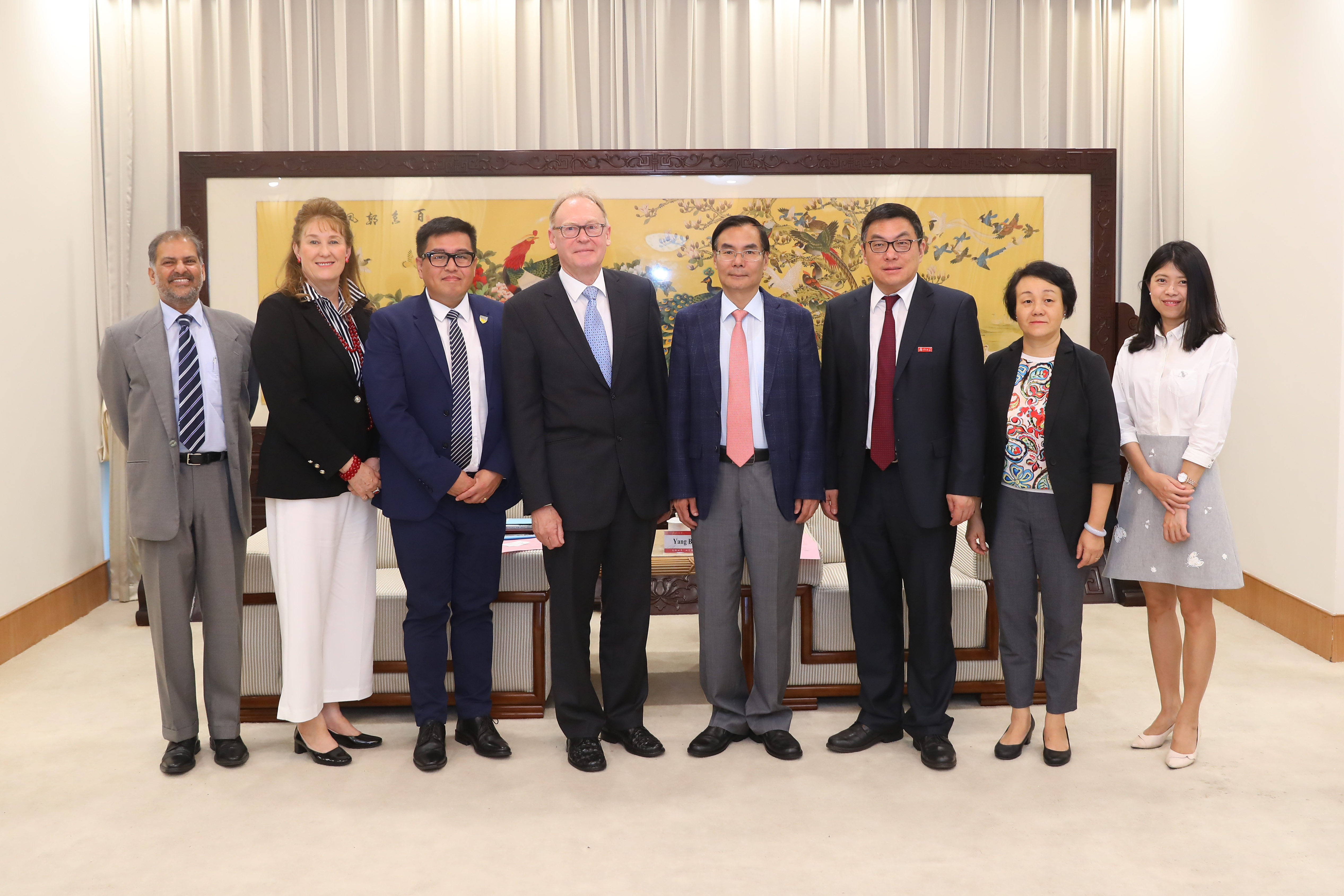 10月23日,澳大利亚南昆士兰大学校董事会主席约翰·多恩布施(Mr. John Dornbusch),国际事务副校长仁轶教授(Prof. Ren Yi),商学、教育、法律和艺术学部执行院长芭芭拉·哈尔佩教授(Barbara de la Harpe)和信息系统学科拉吉·古鲁拉詹教授(Raj Gururajan)一行4人来访我校,与国际学院和信息学院商谈开展预科课程开设及学生联合培养等方面合作。副校长杨斌会见客人。