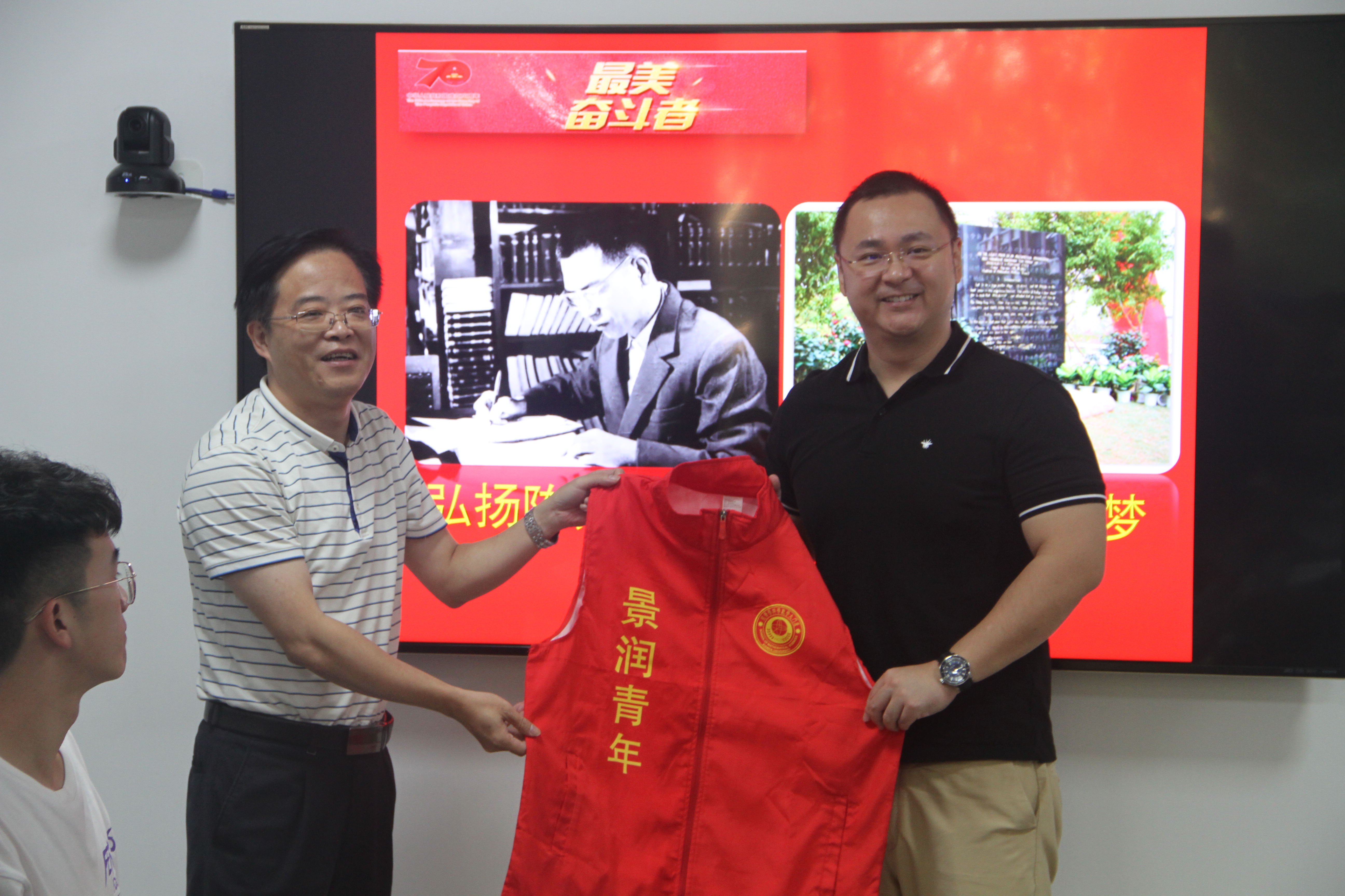 黄宝秋代表学院欢迎陈由伟常回家与“景润青年”交流分享,并向他赠送了“景润青年”的志愿者红马甲,希望大家进一步发扬光大“最美奋斗者”陈景润院士科研报国的家国情怀和勇攀高峰的科学精神,努力将自己培养成为具有家国情怀、全球视野、扎实学识、创新精神的未来数学人才,希望未来能够产生更多陈景润式的新一代代表性人物,把对初心使命的感悟转化为刻苦钻研和干事创业的坚守定力与自觉行动,为实现学校“双一流”建设目标、数学强国梦和中华民族伟大复兴的中国梦作出厦大数学人的时代贡献。