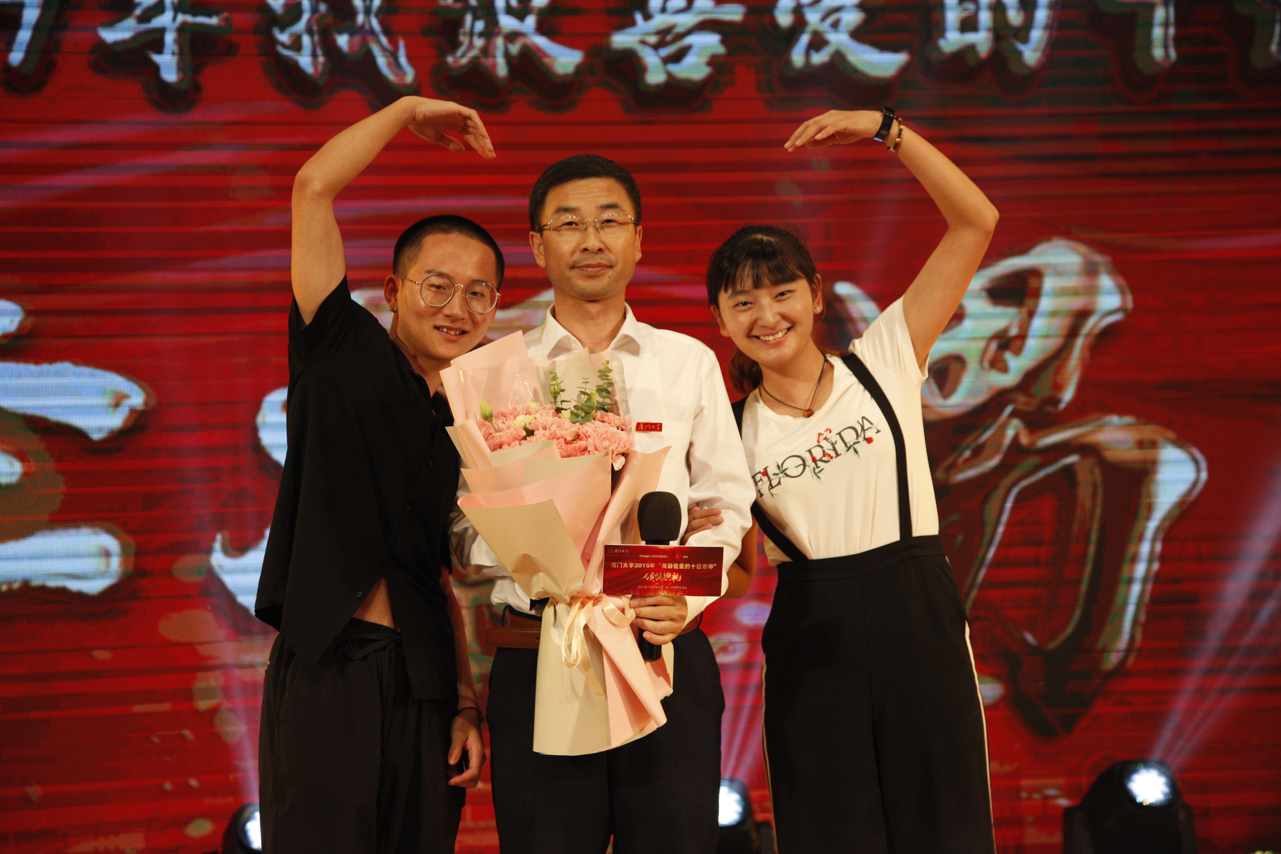 在中华人民共和国成立70周年之际,颁奖仪式的最后,全场师生起立,同唱《我和我的祖国》,现场红旗舞动,激情澎湃。