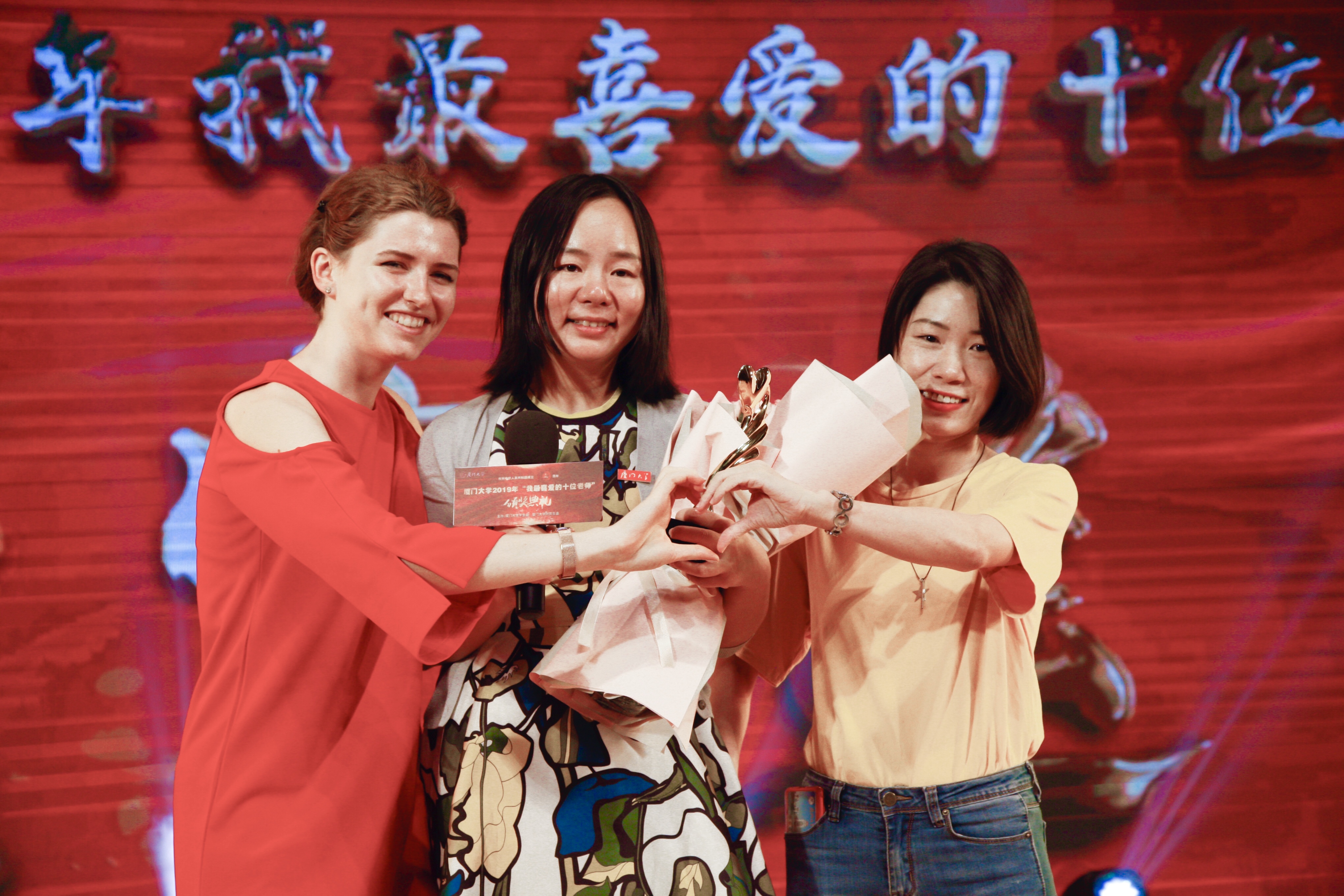 颁奖环节中,各院学生代表上台向老师们敬献奖杯和鲜花,表达对老师们多年来辛苦付出的感谢。各位老师也从不同方面分享了他们从教生涯中的点点滴滴。其中一位老师所说:“要以这次的评选活动为契机,以评促学,以评促教,促进厦门大学‘双一流’教学工作的继续开展!”