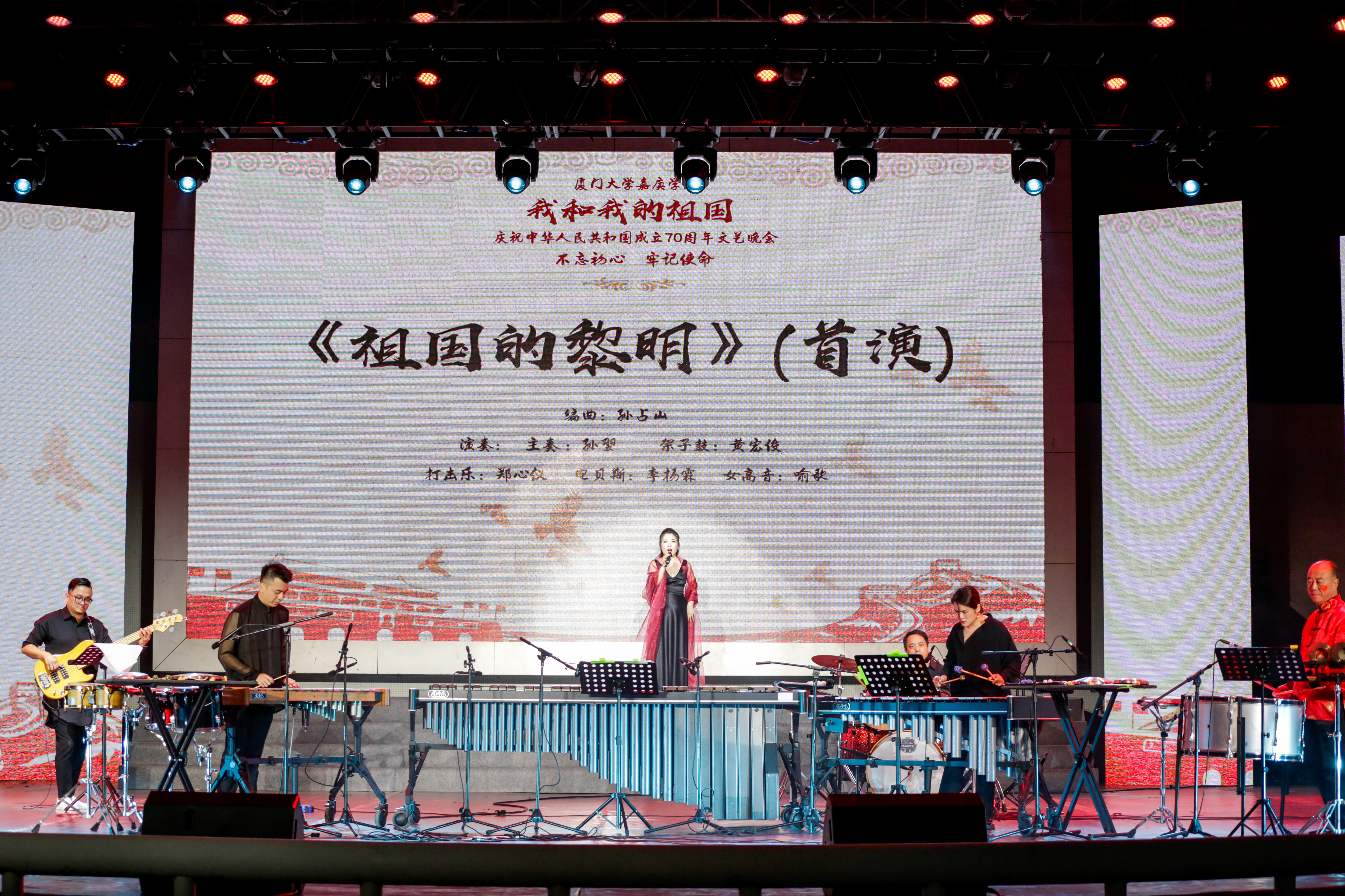漳州招商局经济技术开发区文化与旅游发展局副局长董丽云,厦门大学党委常委、漳州校区党工委书记、管委会主任、厦门大学嘉庚学院党委书记林辉,厦门大学团委书记曾铮,厦门大学学生工作处副处长高斌;厦门大学嘉庚学院副院长刘暾东、党委副书记王洁松,漳州开发区消防大队、厦门大学附属实验小学、嘉庚学院幼儿园等单位的负责人以及嘉庚学院部分教学单位、行政部门主管和师生共同歌唱祖国。