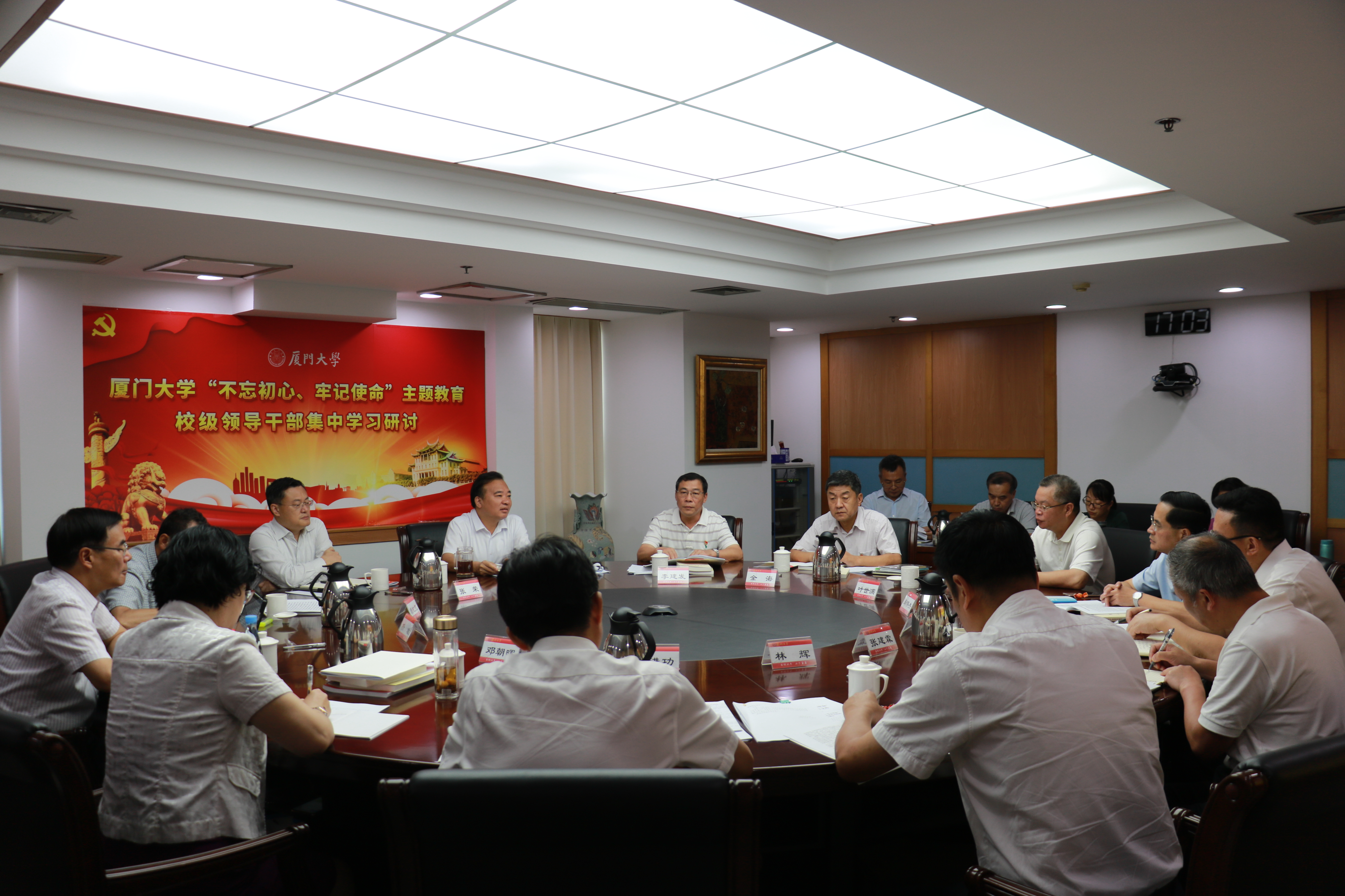 9月23日下午,厦门大学校级领导干部围绕“全面从严治党”专题进行“不忘初心、牢记使命”主题教育第二次集中学习研讨。校党委副书记赖虹凯主持。