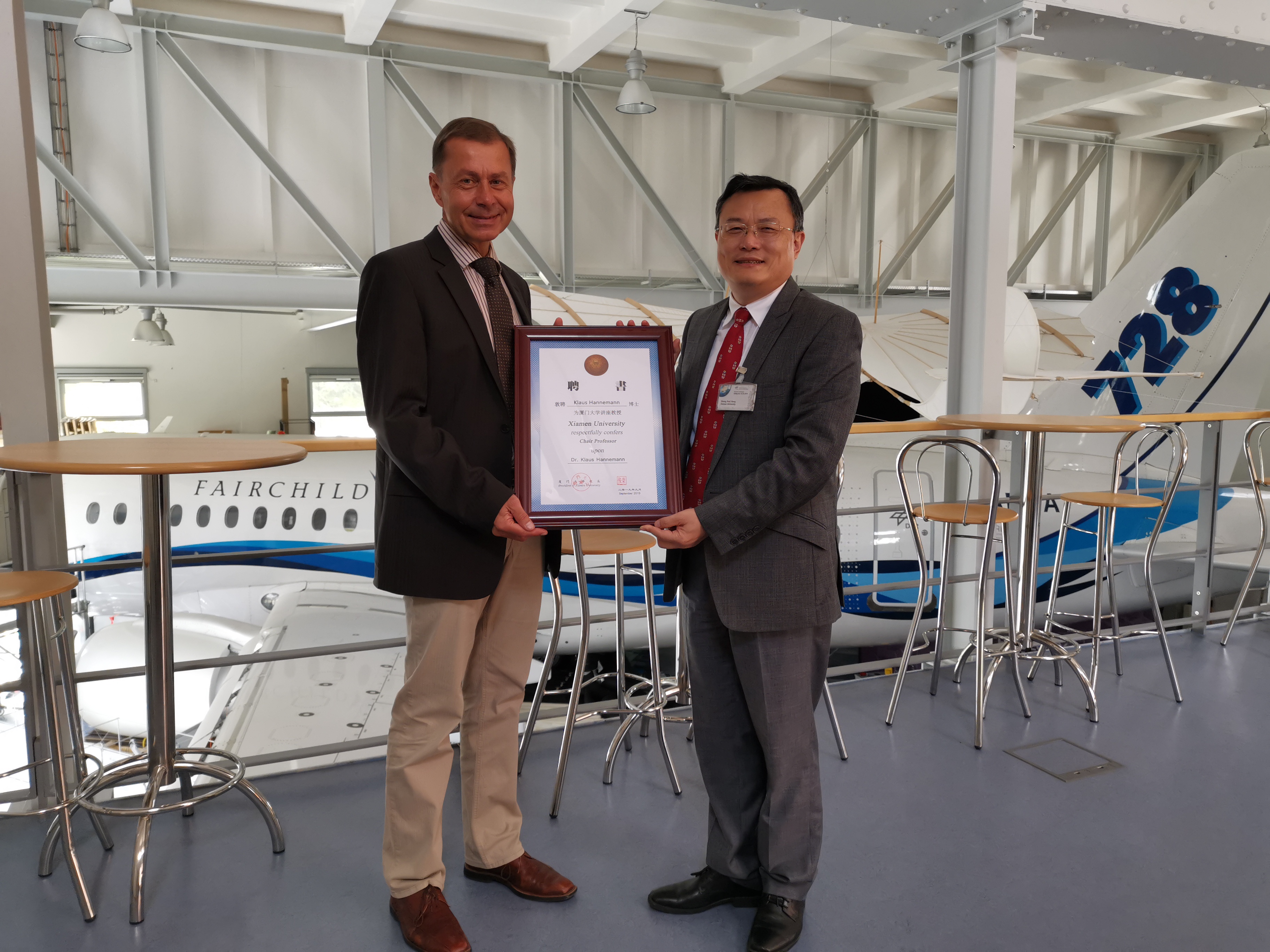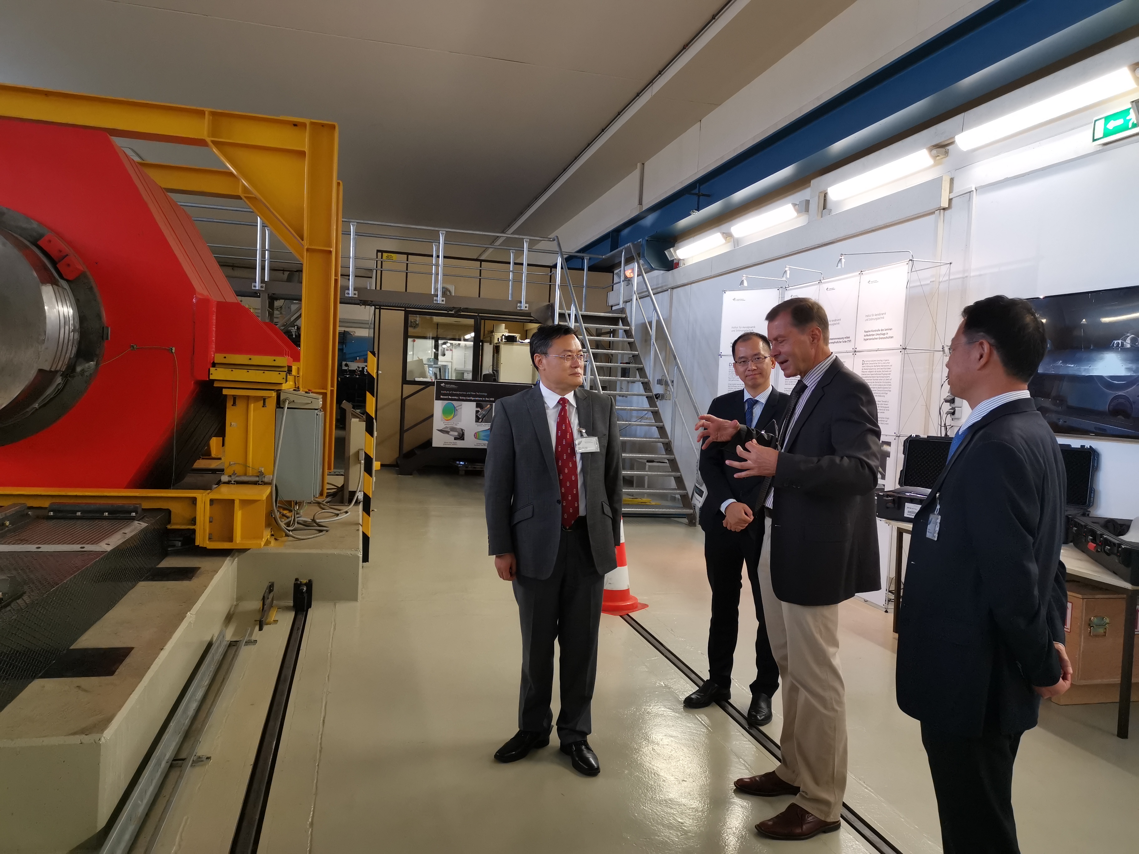 5日上午,张荣一行来到位于哥廷根的德国航空太空中心空气动力学与流体技术研究所。德国航空太空中心(DLR)成立于1907年,是德国国家级航太、能源与交通运输研究机构,管理德国在航空、航天、能源、运输和安全等领域的研发工作。总部设在科隆,共有33个研究机构分散在德国16个城市,并在布鲁塞尔、巴黎、东京和华盛顿特区等设有办公室,现有员工8000多人。张荣一行与DLR空气动力学与流体技术研究所负责人Klaus Hannemann进行了会谈,双方介绍了各自的研究情况,并就三维激波附面层干扰技术领域的合作进行了很好的交流,张荣还向Klaus Hannemann颁发了厦门大学客座教授聘书,还参观了高焓脉冲风洞实验室等设施。