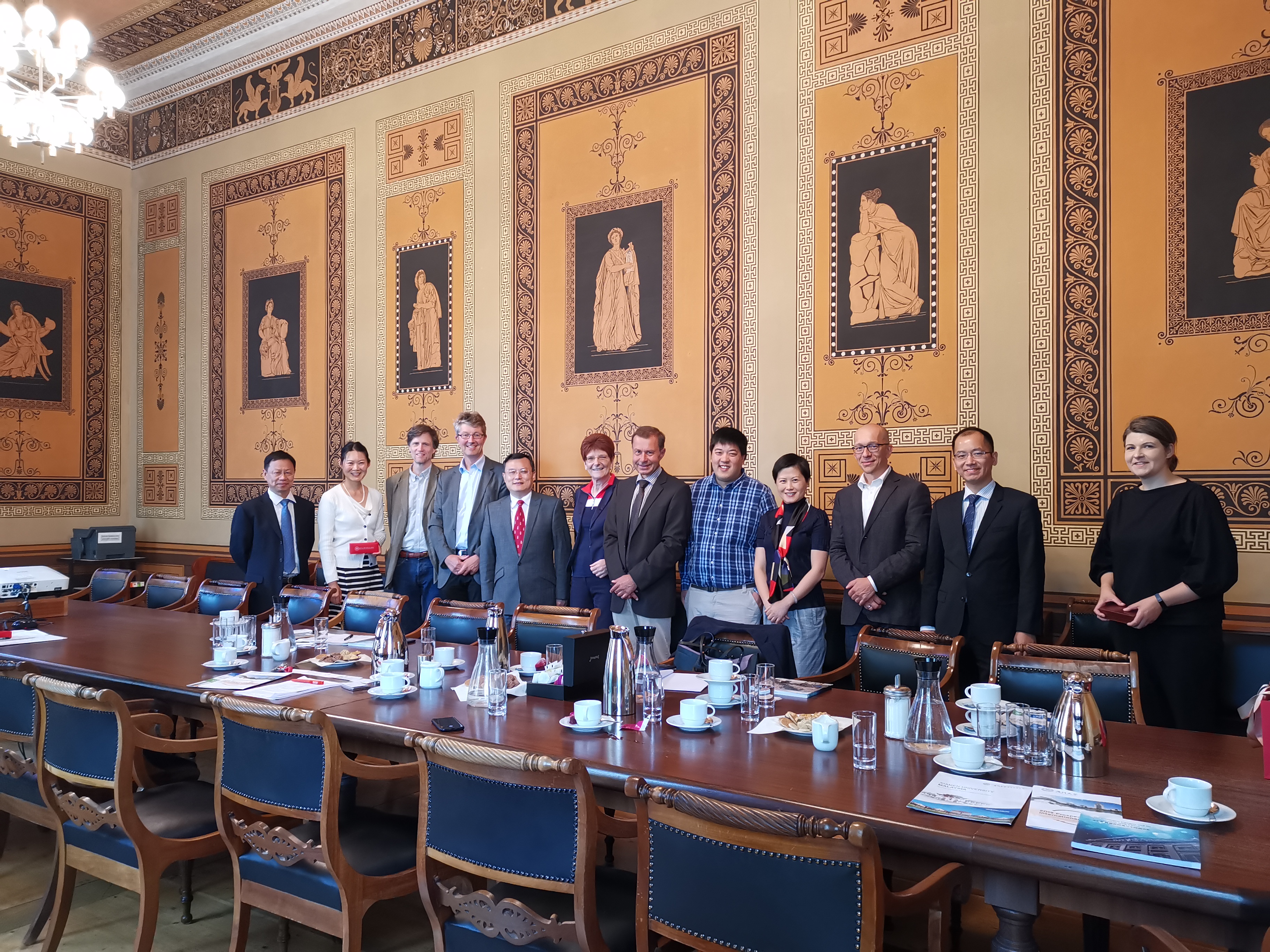 5日下午,张荣一行访问哥廷根大学,哥廷根大学分管国际事务副校长Gasper-Hehne代表哥廷根大学校长向张荣一行表示热烈欢迎,并安排该校化学、物理、数学和信息等学院以及科研处、国际处等部门负责人一起与代表团进行了很好的会谈。双方介绍了各自情况,并就两校建立校际合作关系以及在学生互访交流、科研合作和联合培养等领域达成了共识。哥廷根大学是德国精英大学之一,建于1734年,拥有45位诺贝尔奖获得者,在数学、物理和化学等学科研究上都有很高造诣。