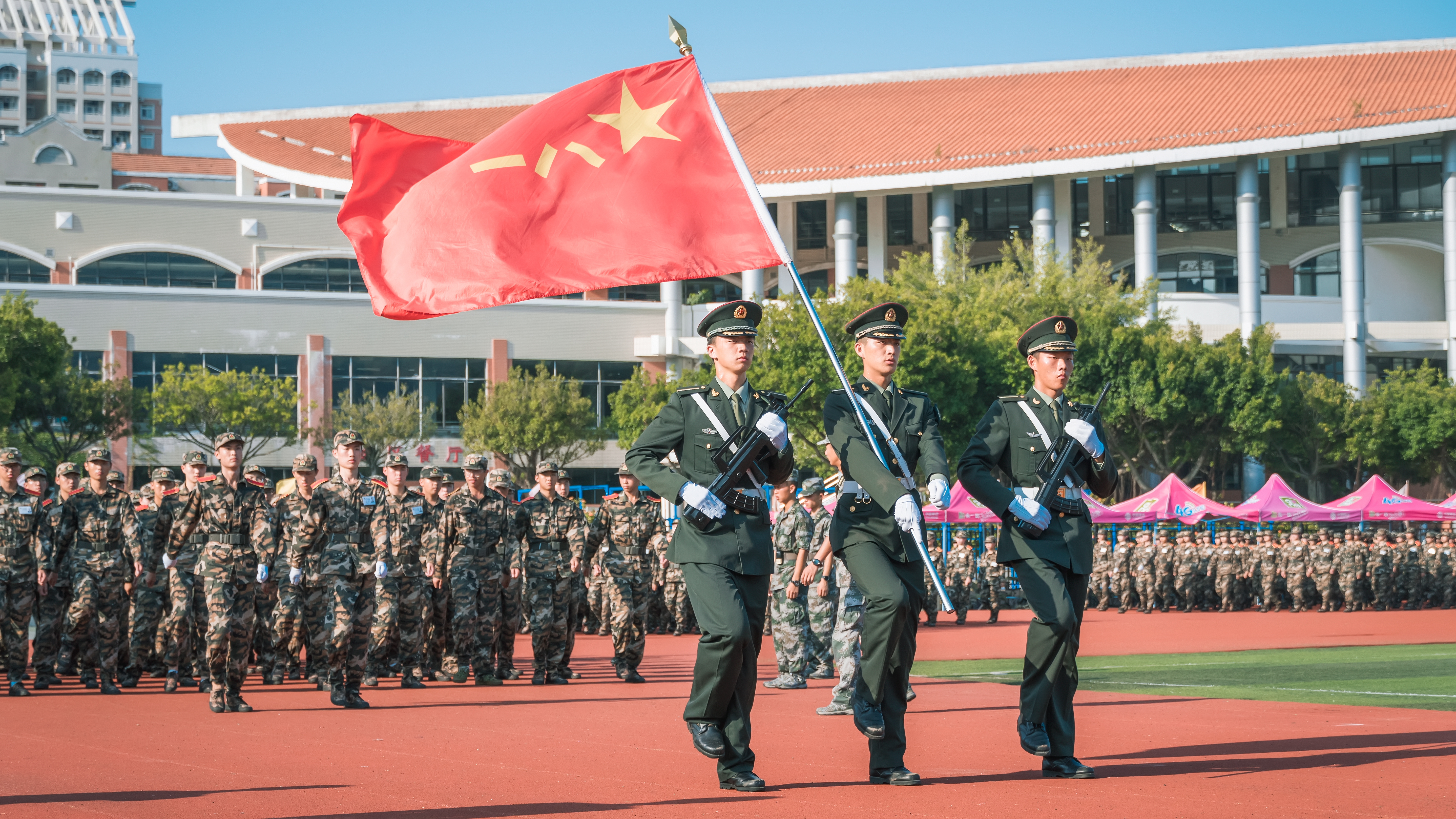 9月14日上午,嘉庚学院2019级新生军训结业典礼在漳州校区北区田径场举行。4423名2019级新生汇报表演了为期两周的军训成果。