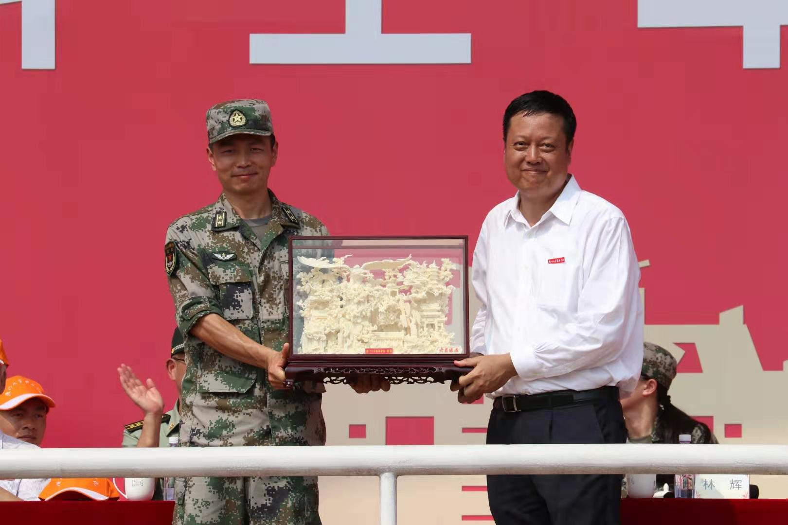 林辉代表学院感谢承训部队对本次军训的大力支持,并向承训部队赠送纪念品。