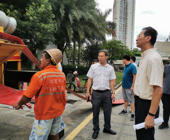 为全力应对即将来袭的第11号台风“白鹿”,8月24日下午, 校党委副书记赖虹凯、副校长邓朝晖带领学校相关职能部门负责人对我校防抗台风工作进行现场再部署再指导。
