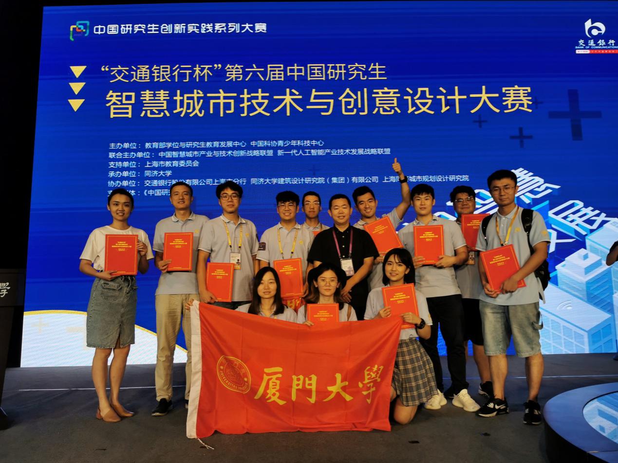 8月11日,第六届中国研究生智慧城市技术与创意设计大赛在同济大学落下帷幕。由建筑与土木工程学院师生组成的厦门大学代表队,荣获一等奖2项,三等奖1项,优秀指导教师奖3项,我校获“优秀组织奖”,创我校历届参赛的最好成绩。
