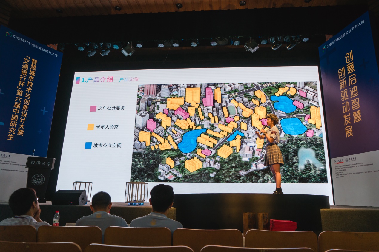 一等奖作品《智慧长照3.0——银发社区互助碰碰车系统》基于无人车和5G技术,将养老问题与城市空间结合,构建了智慧养老服务链。在社区内,老年人通过一键呼叫的方式呼叫互助碰碰车,方便老年人安全出行。在车上,备有应急药品,老年人可在车上进行一些基础性的身体检测。六边形的无人车可相互组合成不同的活动场所,方便老年人群品茗、下棋、聚会,促进老年人之间的交流。在现场的路演中,该作品也得到了在场评委与观众的一致认可和称赞。