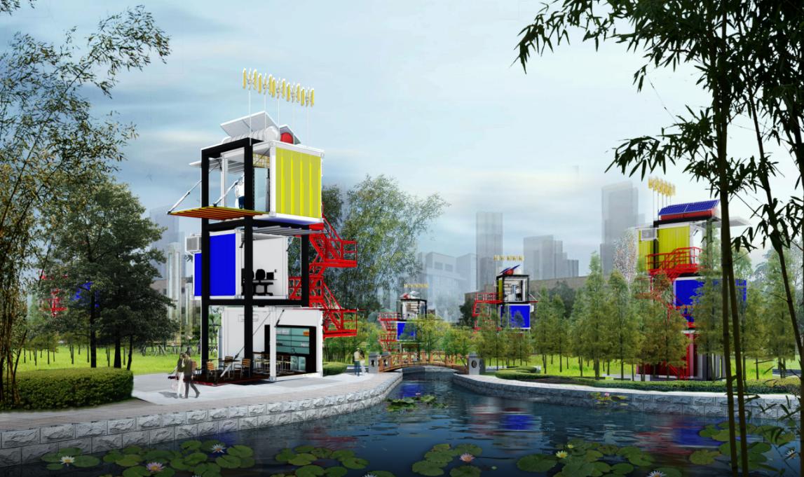 同为一等奖作品的《“盒”聚变——智慧城市共享微空间》,结合了微空间的尺寸需求,选取10英尺标准集装箱作为共享盒子的载体,并在其中置于多种功能,不同功能的盒子对应不同的颜色。共享盒子是集环保、经济、模块化为一体的全新概念构筑物,以轻钢为骨架、夹芯板为围护材料,以标准模数进行空间组合,构件采用螺栓连接,方便组装和拆卸及整体移动运输,满足了通用标准化、环保节能化、快捷高效化的需求。