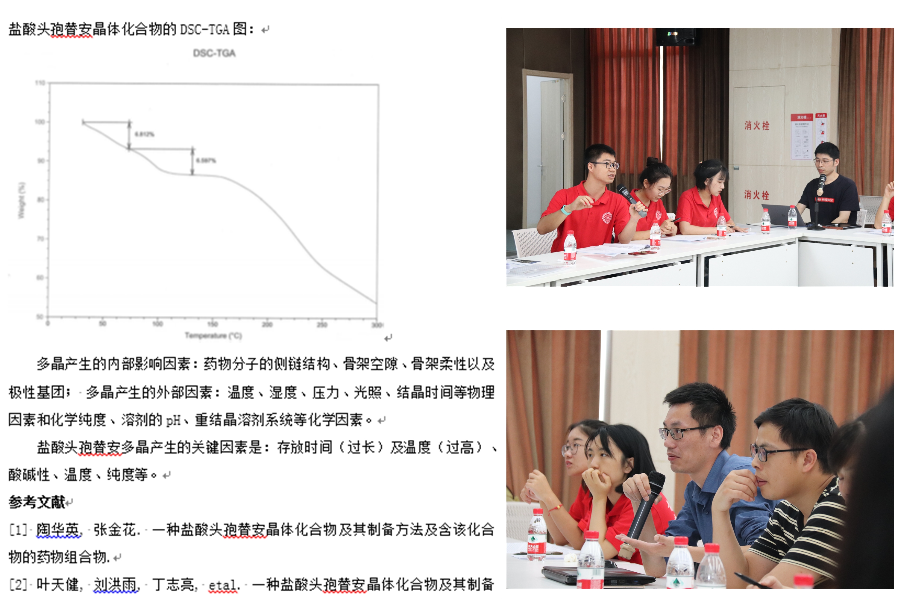 在落地实践前,永宁药业提出11个技术问题;实践队的同学们结合各自实验室的研究经历,经过充分调研给出了32页的详细解决方案和措施。在现场沙龙活动中,实践队员与企业五位技术负责人展开了激烈的讨论。其中着重解答了如何高效分离药物中的降解杂质、如何合成已知结构的杂质、药品的XRD、TGA、DSC等表征中的差异如何分析原因以及原料药品申报合成路线步数策略等问题。