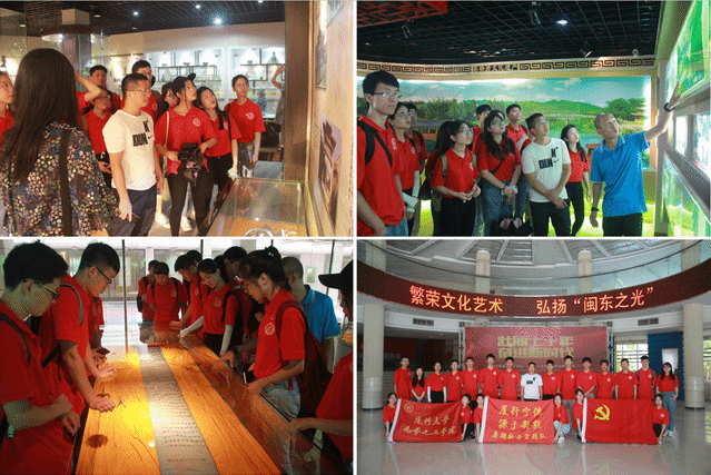 实践队成立临时党支部,在实践期间组织队员到寿宁县下党乡和蕉城区桃花溪爱国主义教育基地开展红色研学为主题的支部活动。下党乡位于闽东宁德的大山深处,直至上世纪八十年代末,全乡没有一条公路,交通十分不便,素有“车岭车上天,九岭爬九年”的说法。习近平总书记在福建工作期间,曾三进下党调研指导扶贫工作,这里成为他扶贫开发思想的“策源地”和“实践田”。在讲解员的带领下,实践队参观了习近平总书记下乡时曾现场办公、休息的鸾峰桥和一进下党乡时走过的文昌阁和“难忘下党主题展”。通过参观,队员们一起重温了习近平总书记在下党现场办公历史和下党乡这三十年来发扬“弱鸟先飞”、“滴水穿石”精神的脱贫致富之路。重走习近平总书记当年走过的连心路,队员们切身体会到习近平总书记三进下党的行路之难,深刻理解了“想致富,先修路”对山区人民的重要意义。习近平总书记在此带领群众脱贫攻坚的实践,为闽东地区留下宝贵的精神财富。从下党乡出来,实践队来到蕉城霍童镇桃坑村(桃花溪),这里是中国工农红军闽东独立师北上抗日集结整编旧址,是闽东重要革命根据地之一。实践队在讲解员带领和讲解下参观了革命历史展陈馆、闽东红军独立师师部旧址、红军会场、叶飞故居、阮英平故居、陈挺故居等,年代久远的历史照片、翔实的史料记载和大量珍贵的历史文物,让实践队重温了闽东独立师艰苦卓越、悲壮感人的革命抗争故事。闽东独立师这支驰骋大江南北屡建奇功、至今仍保留完整建制的英雄劲旅,为闽东这块红土地添上了浓墨重彩的一笔。在红色研学后,实践队临时党支部召开组织生活会,分享红色研学的心得体会,通过活动大家感受到肩上的担子更重了,心中的信念也更加坚定了,表示要传承红色基因,铭记革命历史,传承革命精神。