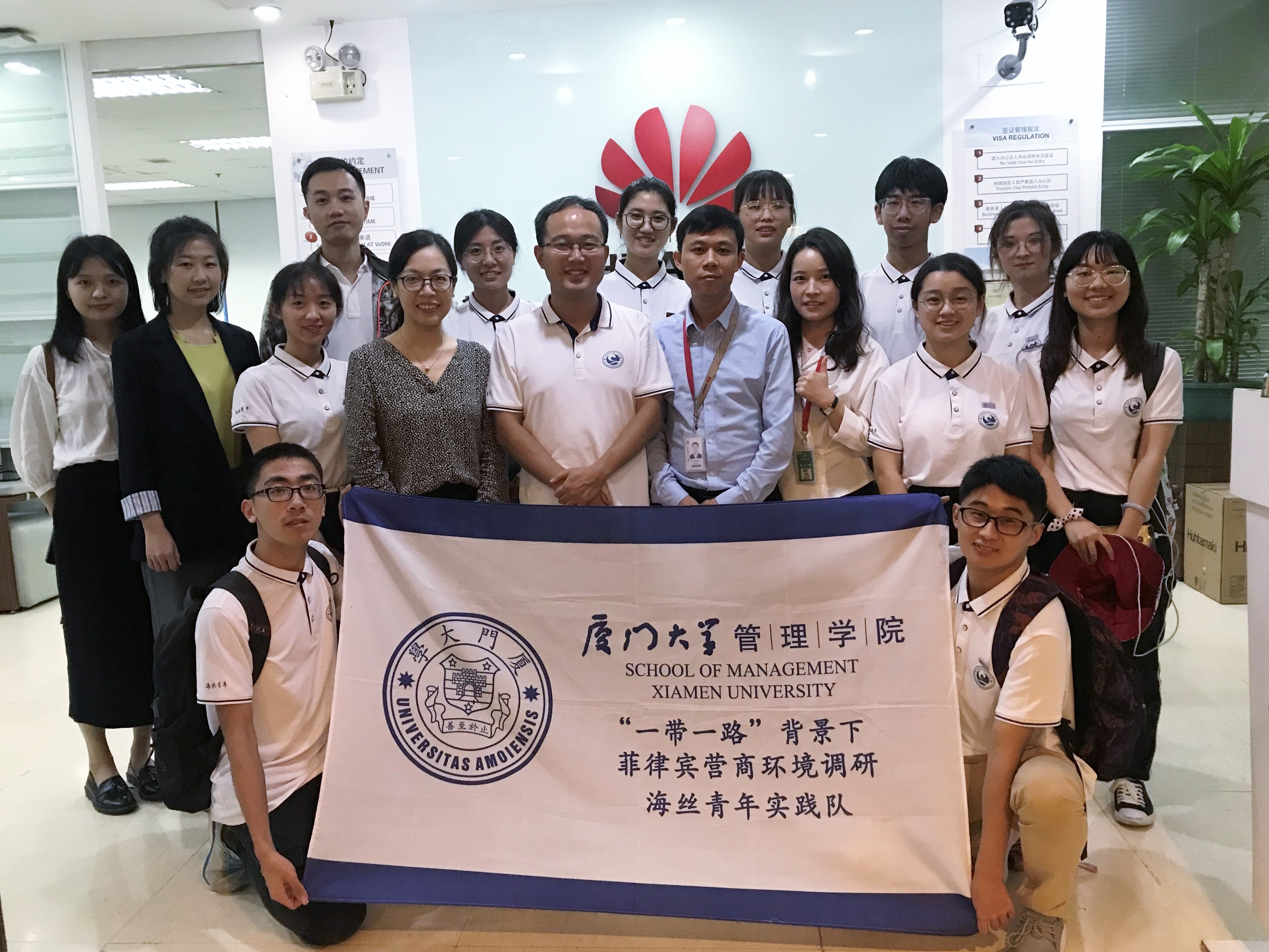 “‘一带一路’为促进全球基础设施建设和互联互通做出巨大贡献,有力推动全球化进程。”华为菲律宾公司就是这么一家企业,在参访过程中,实践队同学了解到华为通讯设备在菲律宾的重要地位,菲律宾也是华为在东南亚地区的第一个商用5G国家。在VIVO菲律宾公司,实践队员从跨文化差异入手,深入探讨VIVO菲律宾公司的跨国经营理念与实际经验,为市场开拓与品牌推广建构菲律宾模式。“空杯心态”是METRO CITY房产公司总经理对其在菲律宾创业历程的最大心得体会,对于快速发展以及瞬息万变的菲律宾房产市场,只有勇敢面对挑战、随时做好准备,才能占领市场;实践队员还走访了校友企业,1996级旅游管理专业陈海伟学长创办的亚洲世界旅行社有限公司,陈学长向实践队员讲述了一个“敢闯敢创,勇立时代潮头”的生动创业故事,也与实践队师生们分享了厦门大学菲律宾校友会的活动情况。