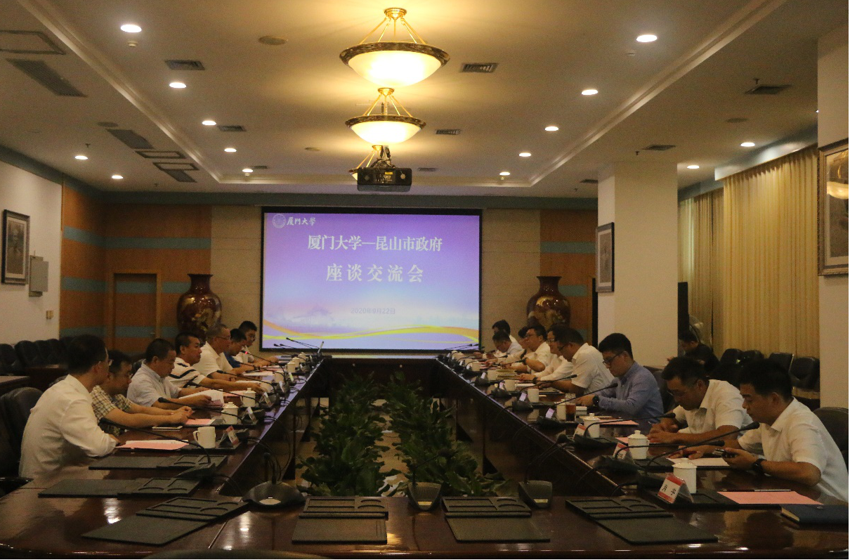 周旭东介绍了昆山市重点产业集群的基本情况。他表示,为助推昆山重点产业发展,加快高校科技成果产业化,昆山市政府希望联合厦门大学、厦门大学物理科学与技术学院等单位在昆山市探讨合作成立研究院,共同致力于第三代半导体材料、器件与装备、碳化硅充电桩、石墨烯规模化制备和微纳结构测量表征等关键技术的研发和应用。