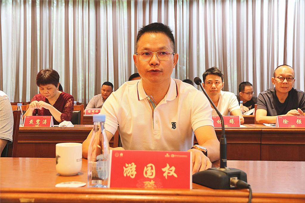 李建发在致辞中指出,明年厦门大学将迎来百年校庆,经过近百年艰苦奋斗,学校培养了40多万优秀毕业生,为国家发展和民族复兴贡献了力量。他表示,学校高度重视校园文化艺术对学生素质养成的“熏陶”,近年来,各类活动精彩纷呈,艺术精品层出不穷,育人成果更加显著。学校今天正式启动“厦门大学文化艺术基金”,特别资助精品剧目、品牌活动、图书出版、档案修复、艺术作品展、壁画建设及图书馆、人类博物馆建设等项目。游国权校友慷慨捐赠309万元资助德旺图书馆壁画创作,成为首批纳入“厦门大学文化艺术基金”的项目,是该基金重要组成部分,必将助力继承“三育并重”传统教育观,丰富“五育并举”育人新模式,进一步弘扬厦门大学“爱国、革命、自强、科学”四种精神,促进校园文化艺术传承、创新、发展与繁荣,厚植厦大学子爱国荣校的情怀。他强调,学校定将珍视游国权校友的这份爱心,以优秀的校园文化艺术培育更多有民族精神和责任担当的栋梁人才。