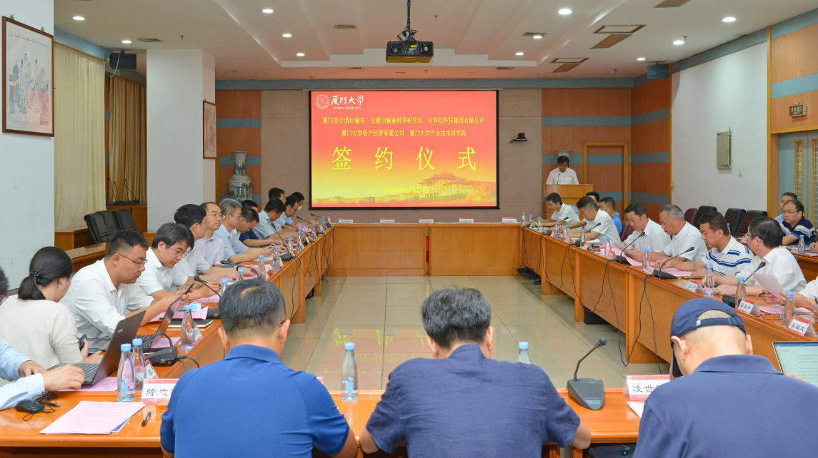 9月25日,厦门大学资产经营有限公司、厦门大学产业技术研究院与厦门市交通运输局、交通运输部科学研究院、交科院科技集团有限公司五方战略合作签约仪式在颂恩楼举行,我校校长助理张建霖,国内合作办公室、科学技术处、资产经营有限公司、产业技术研究院、信息学院、航空航天学院、建筑与土木工程学院、建筑设计研究院、城乡规划设计研究院等相关单位负责人参加。签约仪式由厦门市交通运输局副局长师强主持。