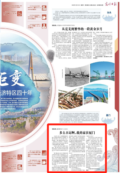 10月15日,《光明日报》第11版刊发《多么幸运啊,我的家在厦门》通讯,以我校外籍教授潘维廉作为参与特区建设的亲历者,从他的视角讲述他的故事,反映出他所在的厦门经济特区人文之美与自然之美和谐共生,反映出中国经济特区四十年的沧桑巨变。“多么幸运啊,这个最美校园,这座最美城市,就是我的家!”