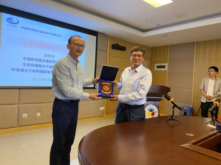 中科院长春应用化学研究所陈学思院士报告题目为“生物可降解高分子材料”,介绍了其团队在绿色可降解塑料聚乳酸、骨科固定器件、组织工程支架、基因/药物纳米载体等材料研发与产业化应用方面的工作。他强调学生一定要打好高分子化学与物理、高分子加工等高分子材料方向的基础学习,学以致用,学有所用。
