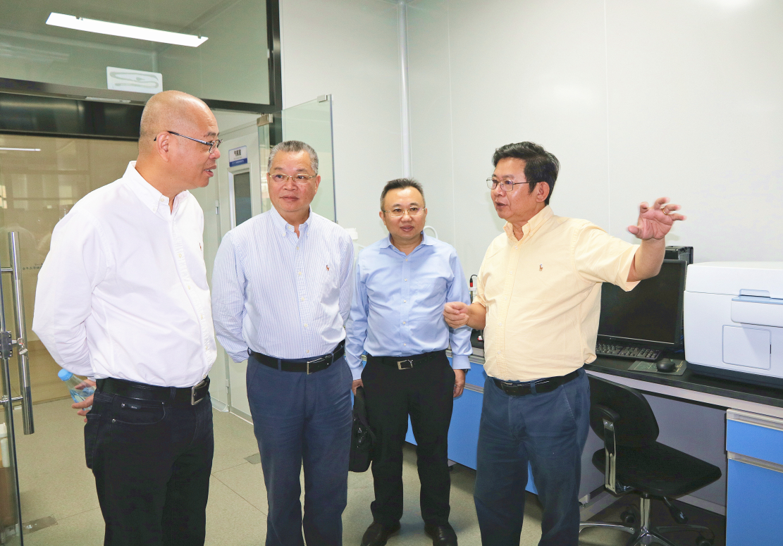 在生命科学学院,学院副院长邓贤明重点介绍了原创药物、靶向药物的研究背景、创新性研究、代表性成果及其转化等情况,并陪同陈国鹰校友等参观了细胞应激生物学国家重点实验室。该实验室以细胞应激反应为主线,通过多方位、多学科、多层次的联合研究,力求全面提高实验室在细胞应激生物学研究领域的综合实力,为国家人口与健康领域的需求做出重大贡献。