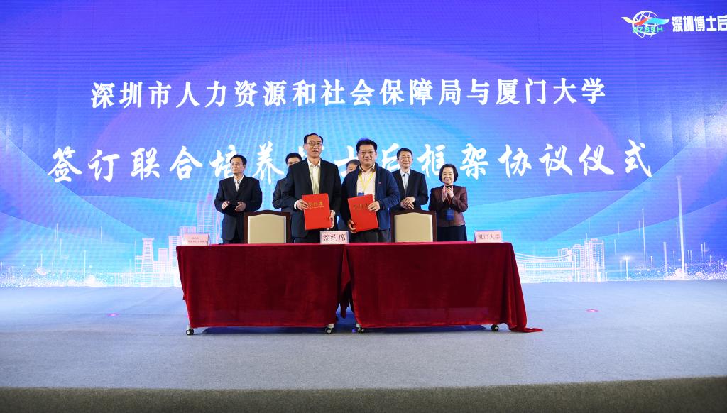 12月12日,厦门大学与深圳市人力资源和社会保障局在深圳市博士后工作25周年座谈会暨首届深圳博士后创新创业论坛上就联合培养博士后签订框架协议。