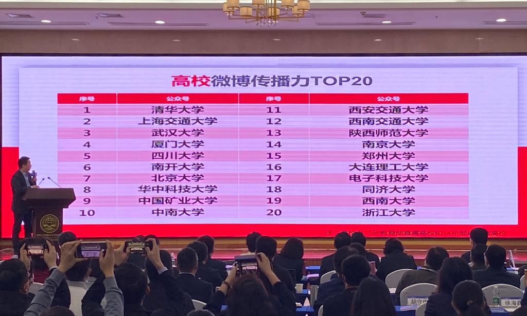 据大数据显示,获得前10名的高校微博分别是:清华大学、上海交通大学、武汉大学、厦门大学、四川大学、南开大学、北京大学、华中科技大学、中国矿业大学、中南大学,获得前10名的高校微信公众号分别是:武汉大学、北京大学、浙江大学、清华大学、上海交通大学、四川大学、西安交通大学、厦门大学、华中科技大学、大连理工大学,获得教育部直属高校教育号前10名的高校教育号分别是:同济大学、上海交通大学、武汉大学、清华大学、大连理工大学、东北大学、厦门大学、北京大学、浙江大学、复旦大学。