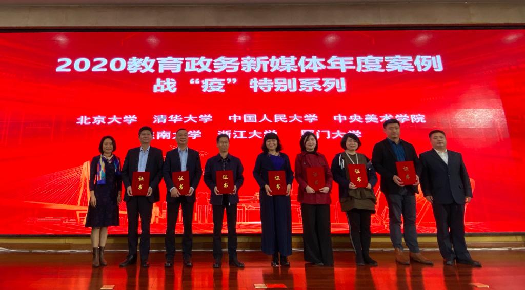 会上公布了2020年高校新媒体影响力年度大数据及年度案例。我校官方微博名列第四位,官方微信名列第八位,直属高校教育号名列第七位。我校选送的《依托教育融媒体,用好战疫“教材,推进网络育人》获“2020教育政务新媒体年度案例”。