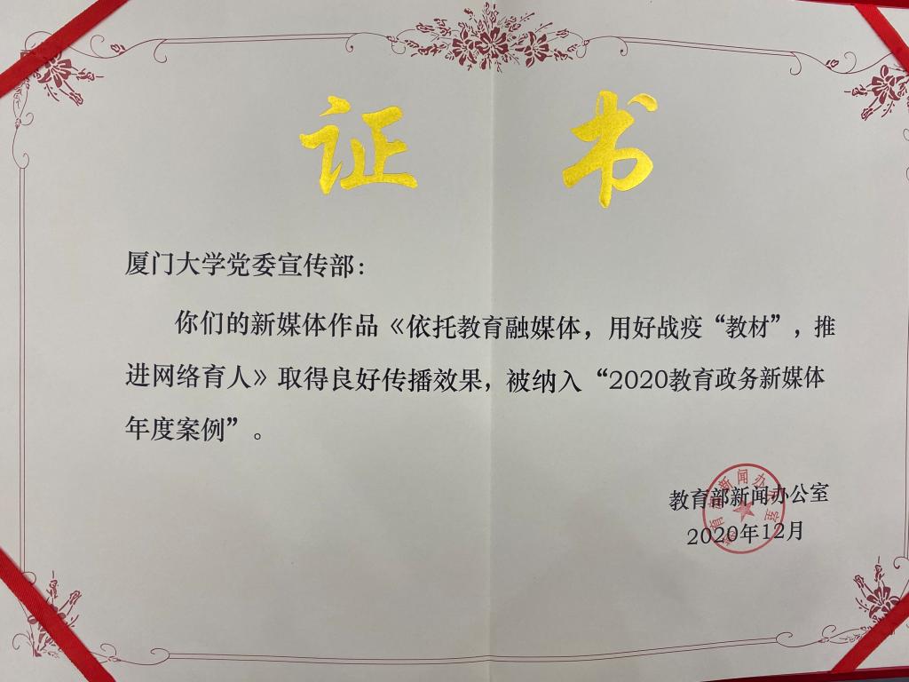厦门大学高度重视新媒体在思想政治工作中的作用,并积极推进媒体融合向纵深发展,努力探索厦门大学融媒体建设道路,提升宣传思想工作的传播力、引导力、影响力、公信力,充分发挥教育融媒体的育人功能。此前,经过自主申报、资格审核、专家审议等程序,厦门大学和浙江省教育厅、湖南省教育厅、天津大学、同济大学等15家单位一同入选第二批教育融媒体建设试点单位。