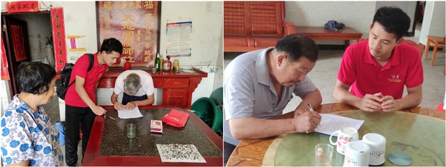 为深入了解迎合村的村情民情,村主任带领团队前往村中贫困农户汪有明、周思开、王良宝等人家中。在了解到团队的技术产业模式后,农户们纷纷就金银草种植、板材效益等方面与团队成员交流,已有10户农户和团队达成了合作意向并签署了合作意向协议书。团队还将带来的两株金银草种苗当场种下。