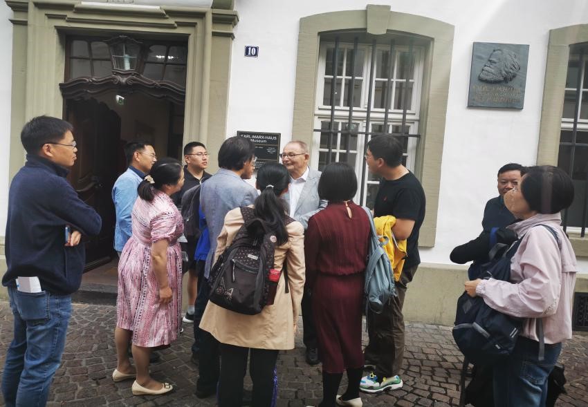 在德国特里尔,研修团成员与中德友协相关研究人员举行了座谈,双方主要围绕德国文化传统、特里尔人文历史对马克思思想的影响、马克思及其思想在特里尔的影响等问题进行讨论。研修团成员还在中德友协人员的热情陪同下参观了马克思故居,充分了解了马克思一生的奋斗足迹及国际共产主义运动的发展历程。