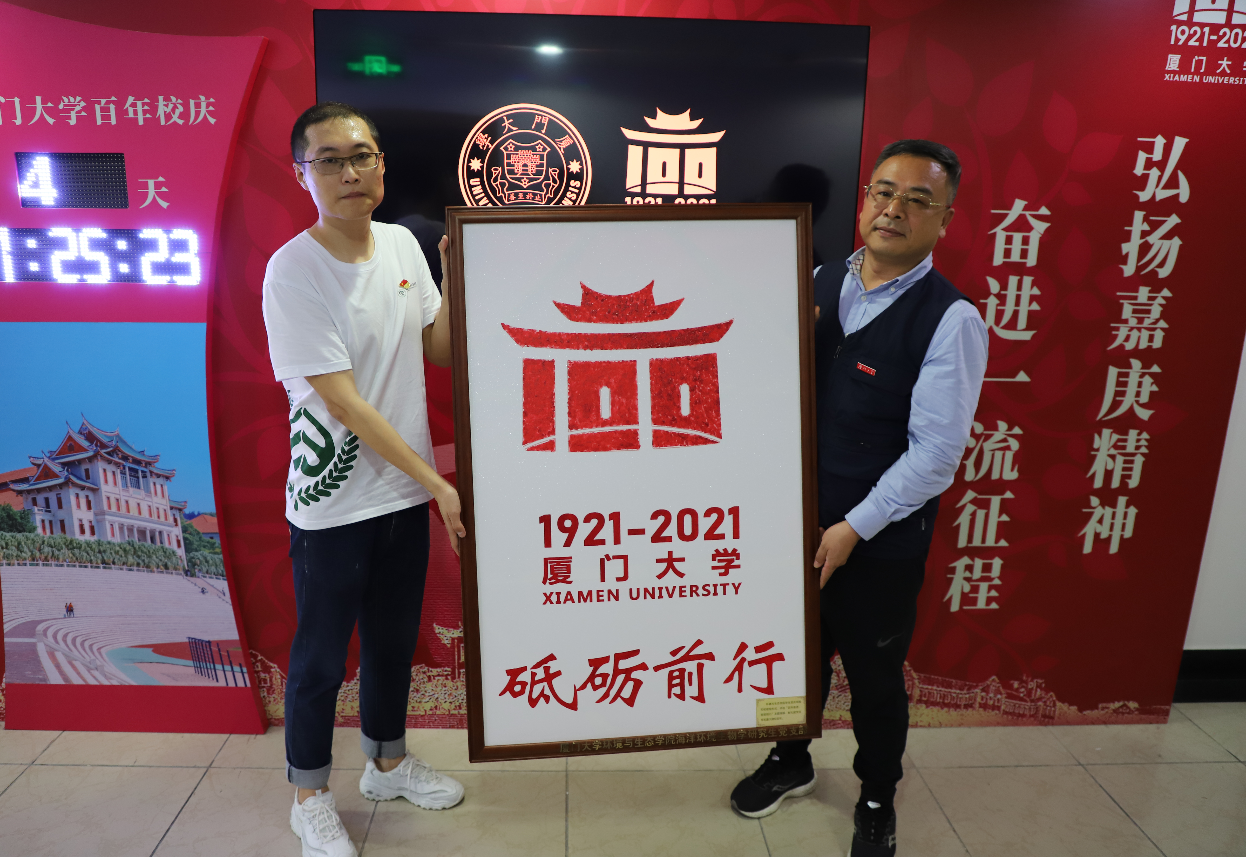 4月1日上午,在距离百年校庆仅剩四天的时候,学校收到了一份特殊的礼物——由环境与生态学院研究生党支部党员以手指印画制作的百年校庆LOGO。学校办公室主任、百年校庆办常务副主任李智勇代表学校接收礼物。