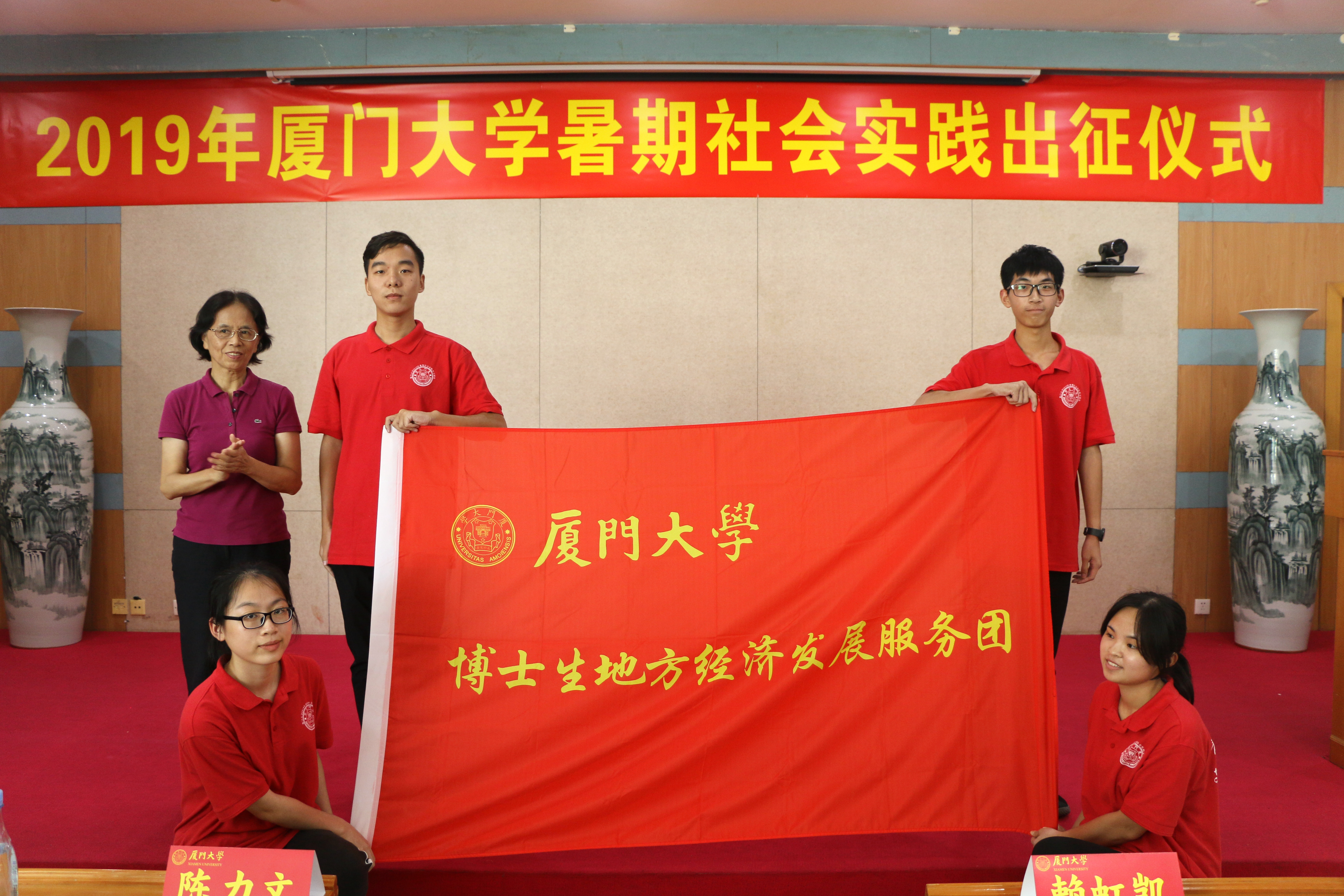 根据福建省的实际需求和校党委张彦书记“要强化实践教学,不断探索丰富厦大服务地方的功能和形态,增强学生在新福建建设中建功立业的本领,在全校营造和形成主动服务地方发展的良好氛围”的具体要求,今年校团委还组建了31支博士团服务地方社会经济发展,数量及质量均创历史新高,陈力文为学生代表授“博士生地方经济发展服务团”团旗。