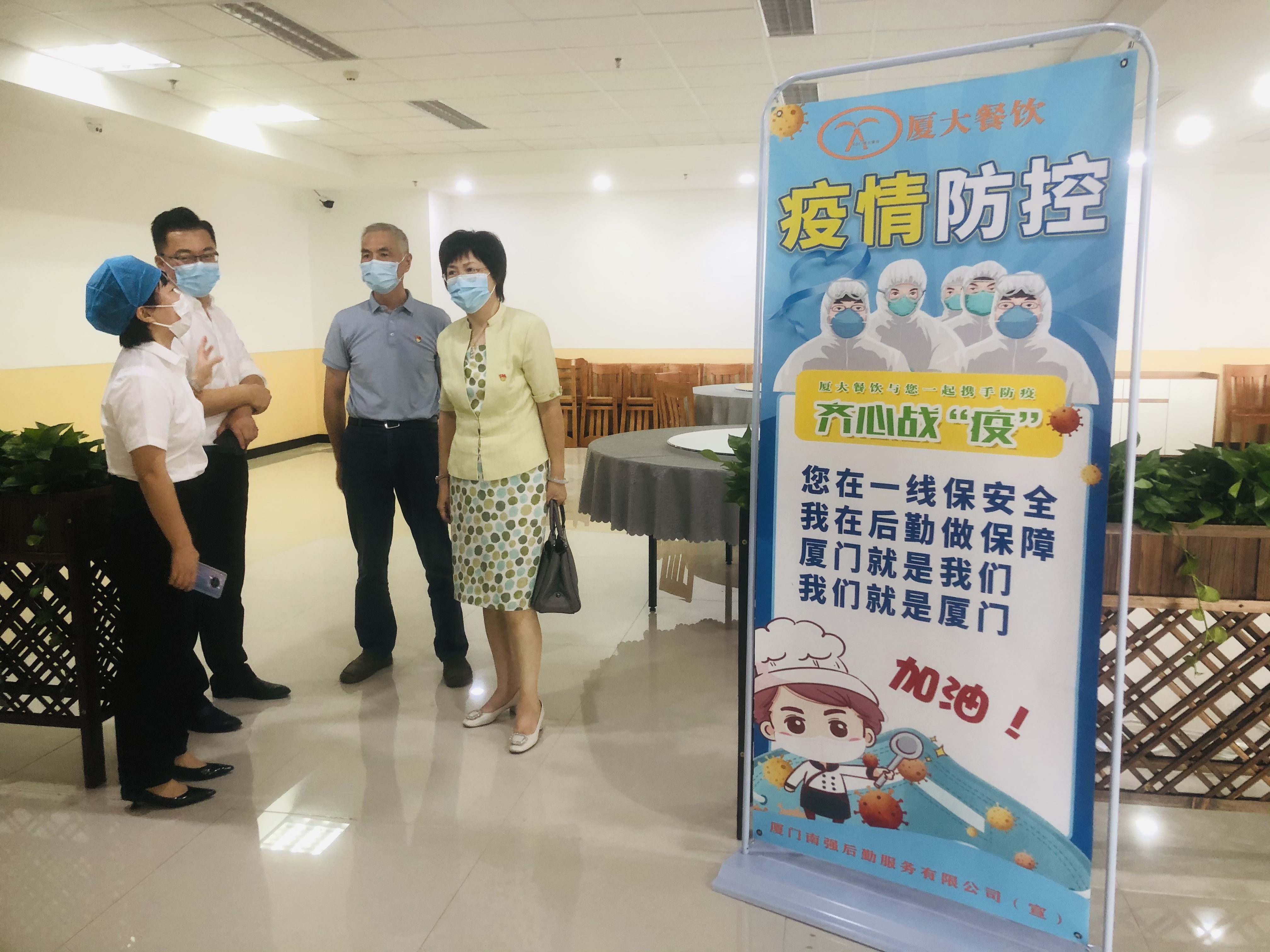 邓朝晖一行还到“厦大餐饮”厦大附属翔安医院职工餐厅调研,她肯定了餐厅的后勤服务保障工作,要求餐厅工作人员在疫情防控特殊时期进一步提高餐饮服务标准,为医护人员和隔离康复的新冠肺炎患者提供美味可口、营养丰富的菜品,让广大医护工作者和患者感受到“家的味道”,解除后顾之忧,为厦门防疫贡献厦大力量。