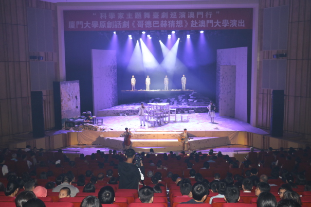7月10日晚,科学家主题舞台剧目巡演澳门行暨厦门大学原创话剧《哥德巴赫猜想》在澳门大学大学会堂隆重上演。此次活动时值迎接新中国成立70周年、庆祝澳门回归20周年之际,由中国科协、教育部、共青团中央、中国科学院、中国工程院和中央政府驻澳门联络办公室作为支持单位,厦门大学主办,澳门大学、澳门城市大学、厦门大学澳门校友会、澳门大学学生会校友会协办。