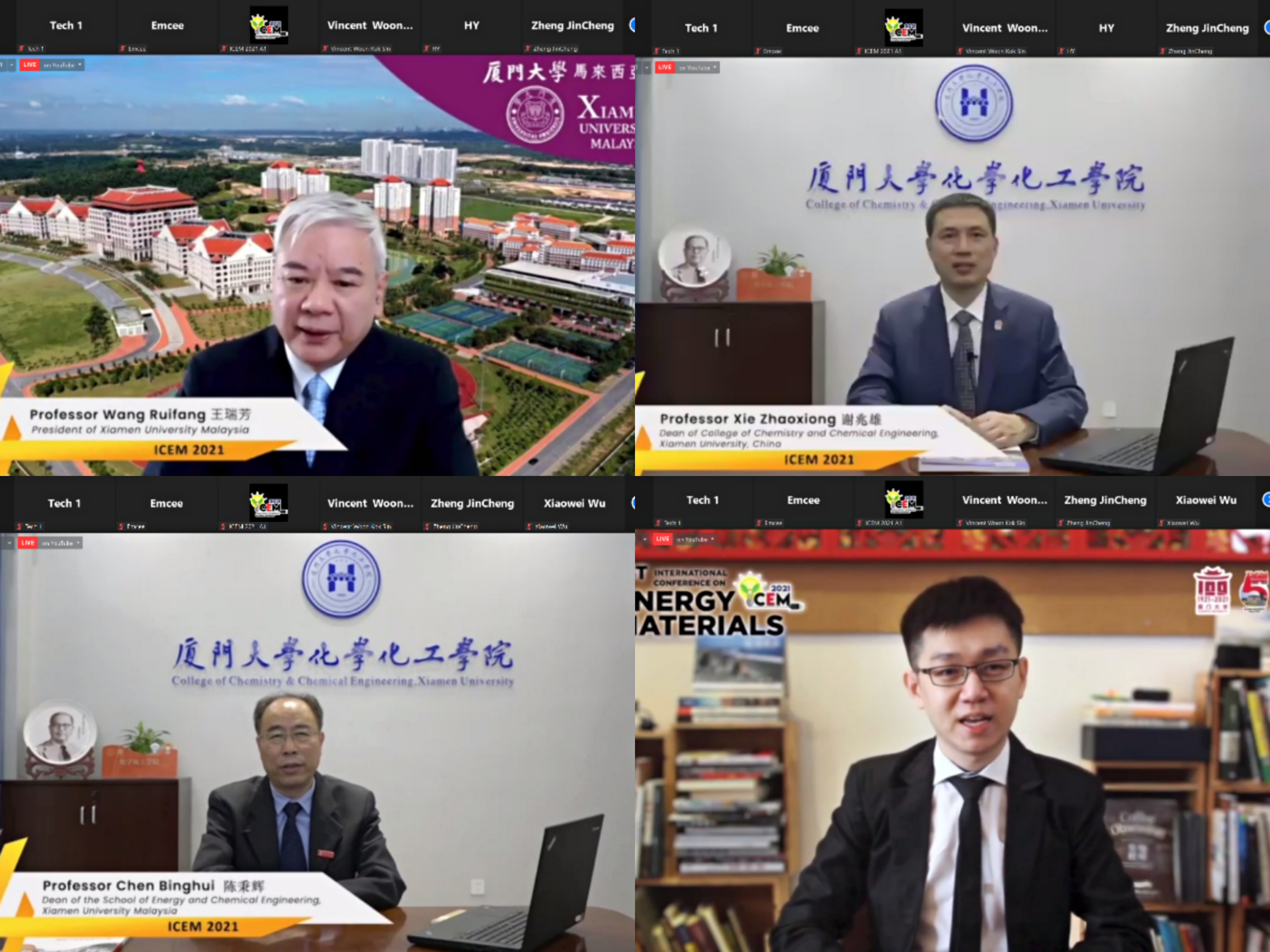 11月5日至8日,由厦门大学马来西亚分校与嘉庚实验室联合举办的首届能源材料国际会议在云端举行。本次国际会议考虑到疫情防控,采用线上会议模式。分校校长王瑞芳教授、本部化学与化学工程学院院长谢兆雄教授、分校能源与化学工程学院院长陈秉辉教授、分校王伟俊副教授(会议主席)分别为开幕式致辞。