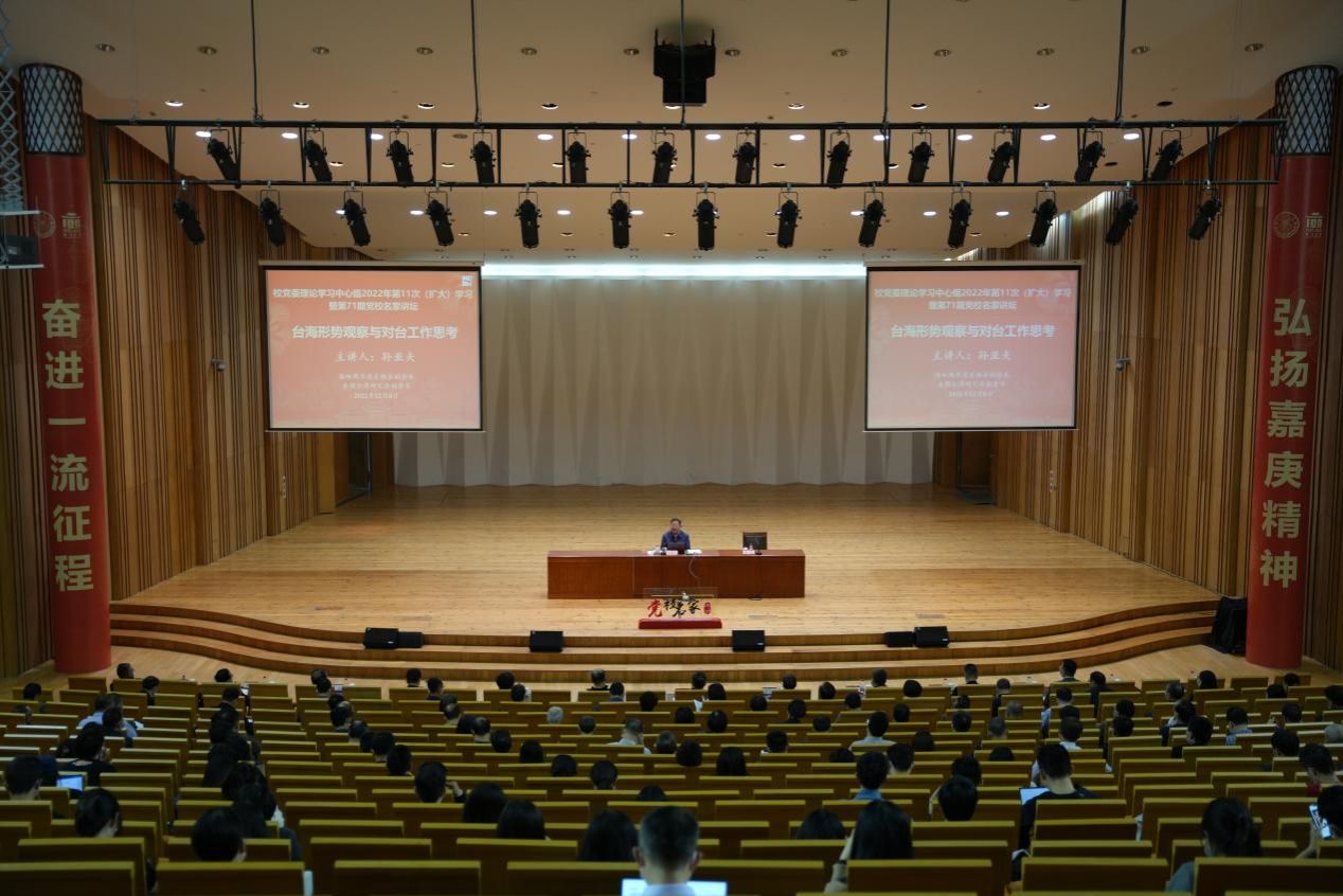 12月8日下午,校党委理论学习中心组2022年第11次(扩大)学习暨第71期党校名家讲坛在科学艺术中心音乐厅举行。海峡两岸关系协会副会长、全国台湾研究会副会长孙亚夫作“台海形势观察与对台工作思考”专题辅导报告。本次讲坛由校党委书记张荣主持。