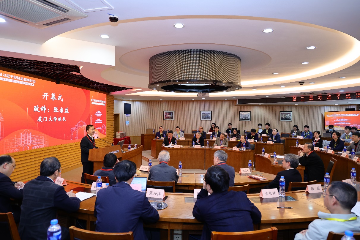 3月18日,由厦门大学经济学院、厦门大学邹至庄经济研究院、中央编译出版社主办,《中国经济问题》编辑部、《经济社会体制比较》编辑部承办的第三届习近平经济思想研讨会暨《资本论》数字纪念馆开馆仪式在厦门大学召开。厦门大学校长张宗益,经济学院与王亚南经济研究院院长周颖刚,中央编译出版社副社长张远航作开幕式致辞。开幕式由厦门大学经济学院党委书记黄鸿德主持。