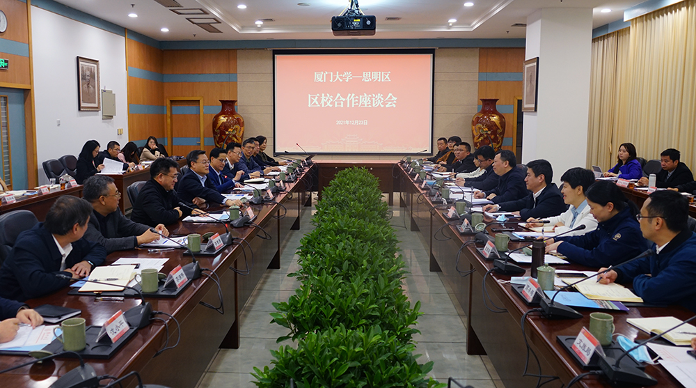 12月23日下午,厦门大学—思明区区校合作座谈会在我校颂恩楼召开。我校校长张荣、思明区委书记黄河明出席并讲话。