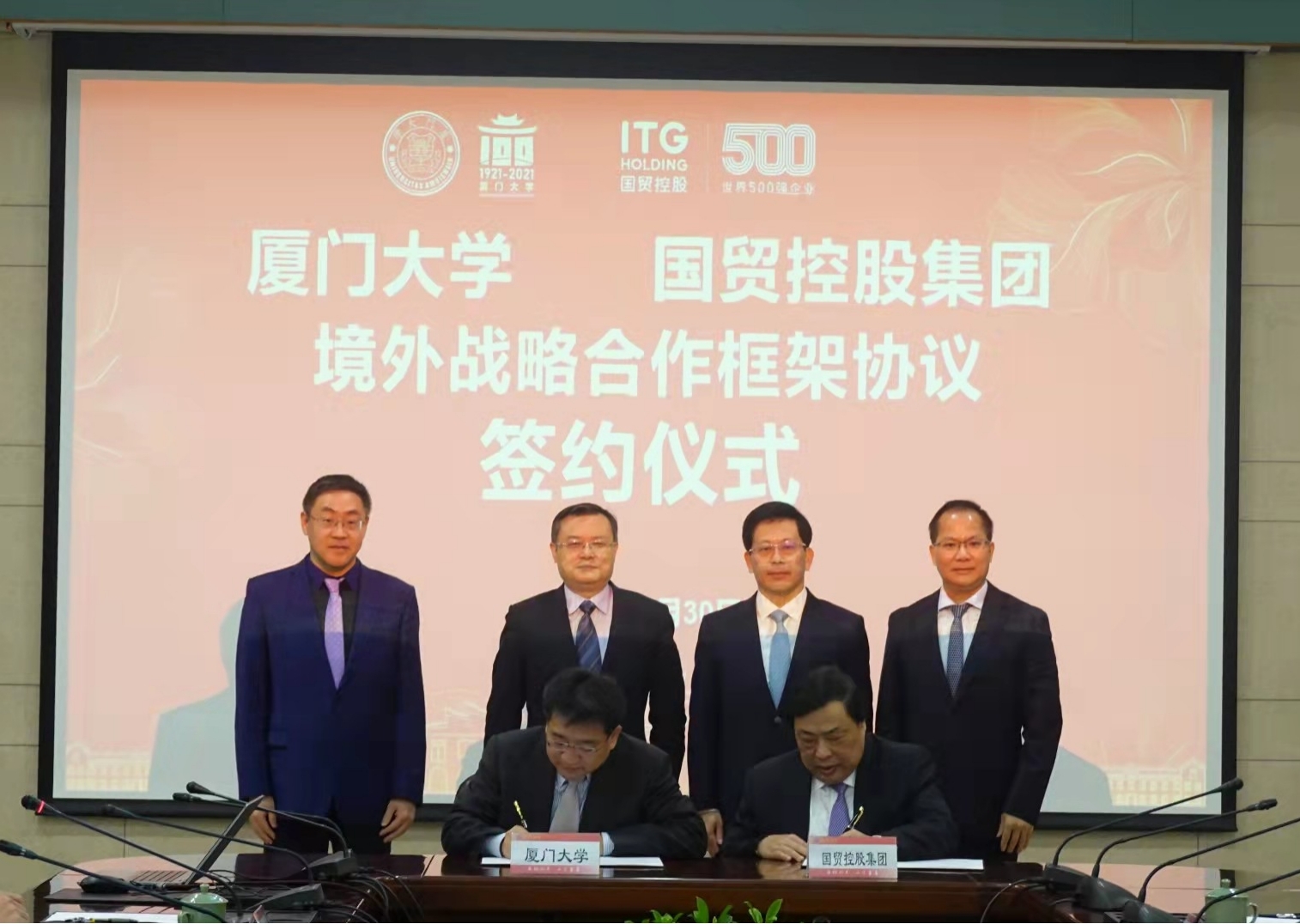 一直以来,厦门大学与国贸控股集团在人才培养、科研合作、人员交流等方面有着密切的合作,特别是在经济学科领域的合作取得了显著成效。我校经济学院国贸系与国贸股份公司合作,在国贸建立了厦门大学专业学位研究生创新教育实践基地。多年来,我校国际商务专业硕士项目聘请国贸高管担任国际商务专业学位研究生“双导师制”的校外导师。