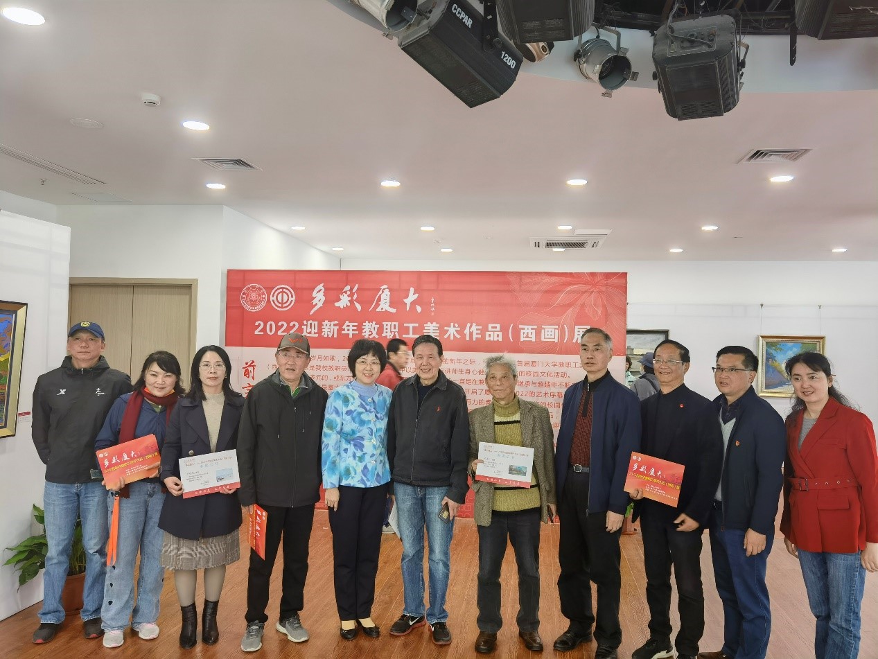 为迎接新年到来,展示我校教职工的爱校之情及昂扬向上的精神面貌,2021年12月31日上午,由校工会举办、书画研究会承办的“多彩厦大”2022年迎新年美术作品(西画)展在教职工活动中心一楼多功能厅开幕。校党委常委、副校长、工会主席邓朝晖出席并讲话。