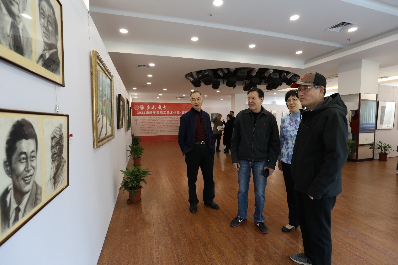 邓朝晖在致辞中表示,美术作品(西画)展是校工会深入学习贯彻党的十九届六中全会精神,学习贯彻习近平总书记在中国文联第十一次代表大会的重要讲话精神的实践举措。近年来,校工会切实担起政治思想引领责任,指导书画研究会提高政治站位,积极弘扬和发展美术文化,通过开展书画创作、技艺交流、理论研讨、书画展览等形式多样的文化活动,不断壮大书画队伍,为积极弘扬艺术文化、活跃教职工文化生活、促进学校精神文明建设作出许多贡献。希望通过本次活动,促进广大师生员工切实增强文化自觉、坚定文化自信,承担起“举旗帜、聚民心、育新人、兴文化、展形象的使命任务”,为实现第二个百年奋斗目标,实现中华民族伟大复兴的中国梦提供价值引导力、文化凝聚力和精神推动力。
