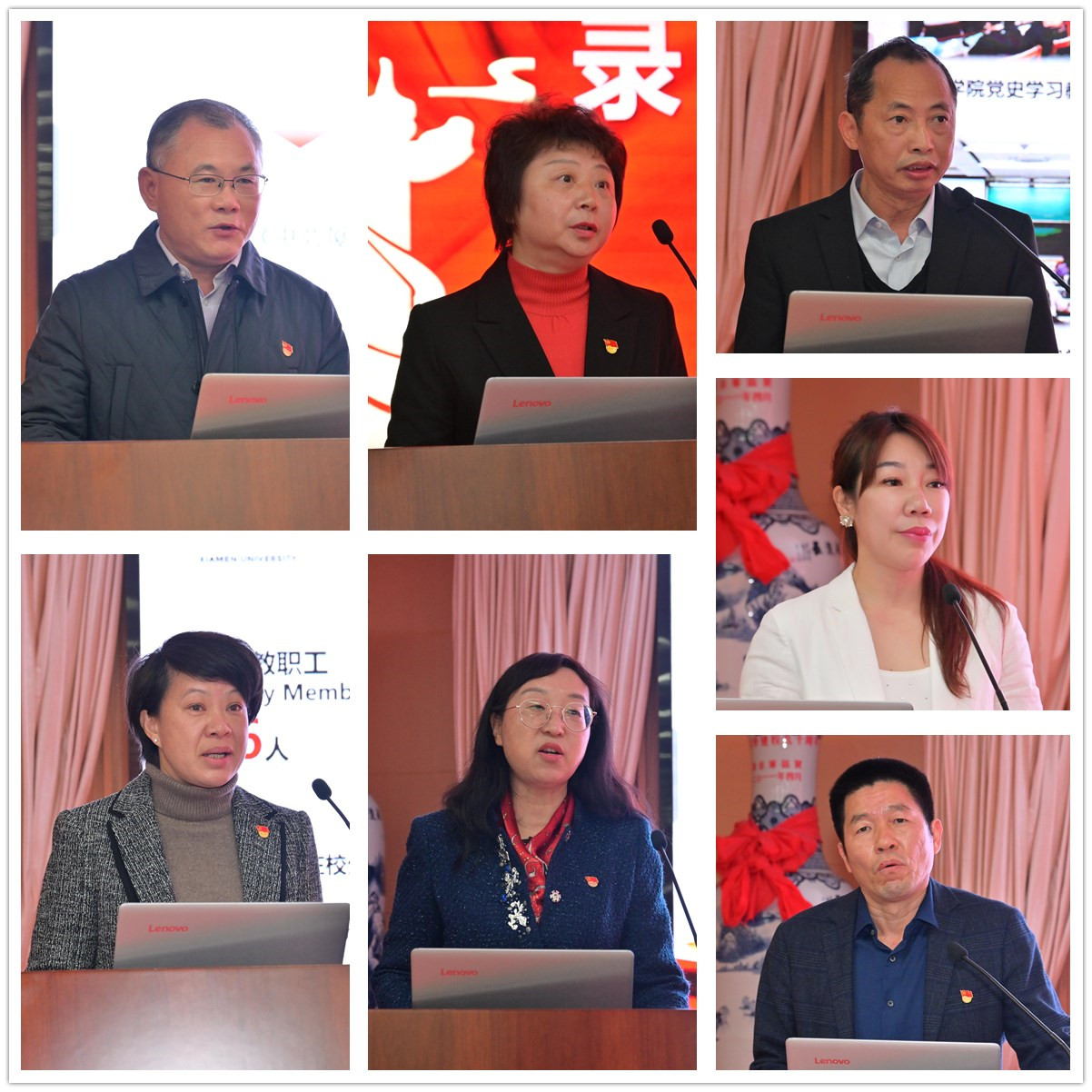 张荣在讲话中指出,党的基层组织是党的全部工作和战斗力的基础。党建工作难点在基层,亮点也在基层。面向新百年,全校各基层党委(党总支)书记要深入学习贯彻习近平总书记重要讲话重要指示批示精神和党史学习教育总结会议精神,全面总结本单位党史学习教育的经验做法,进一步深化“我为师生办实事”实践活动良好机制,推动党史学习教育常态化、多元化;要深入学习贯彻党的十九届六中全会精神,自觉用全会精神统一思想和行动,凝聚推动高质量发展的强大合力,以实际行动坚决捍卫“两个确立”,坚决做到“两个维护”;要认真履行党建工作责任制,坚持聚焦主责主业抓党建,不断推动党建与事业发展深入融合,以一流党建落实立德树人根本任务、加强人才队伍建设、引领学科发展、打开科学研究和社会服务新局面,走出学校党建与事业发展双促进双提升的厦大新路;要带头切实履行好“第一责任人”职责,督促指导班子成员严格履行“一岗双责”,层层传导压力,坚持以落实党建主体责任为抓手,不断健全工作机制,提升基层党组织组织力,高质量做好中央巡视整改“后半篇文章”,推动全面从严治党落地见效。